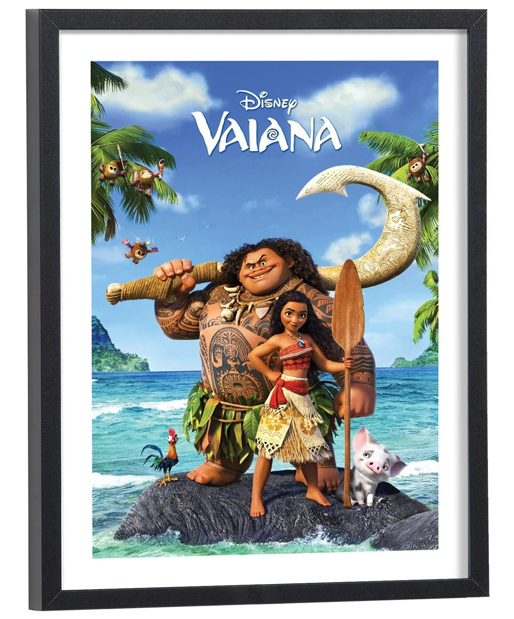 Affiche du film "Vaiana" des studios Disney Pixar. Affiche encadrée avec cadre en bois noir.