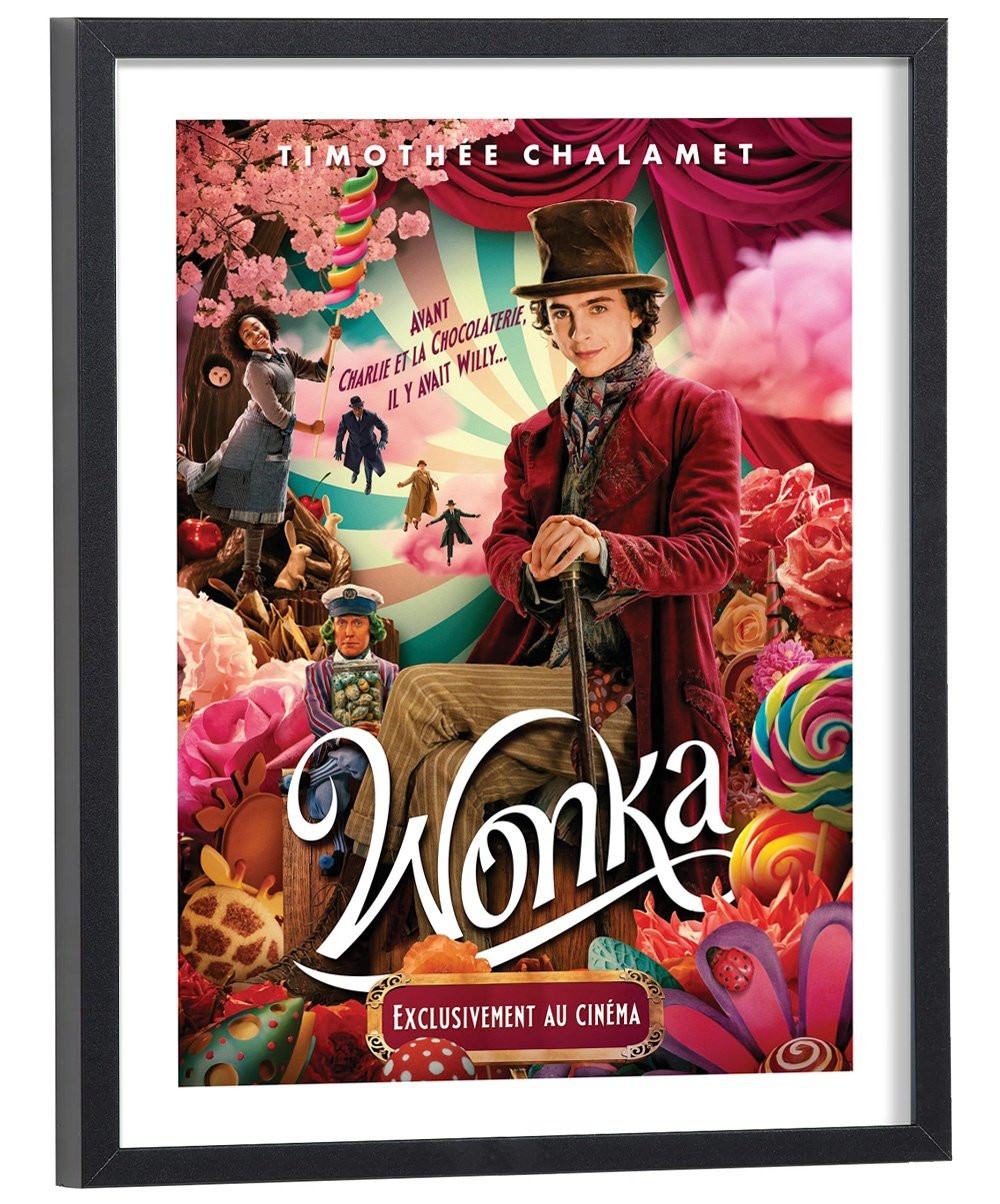 Affiche du film "Wonka". Affiche encadrée avec cadre en bois noir.