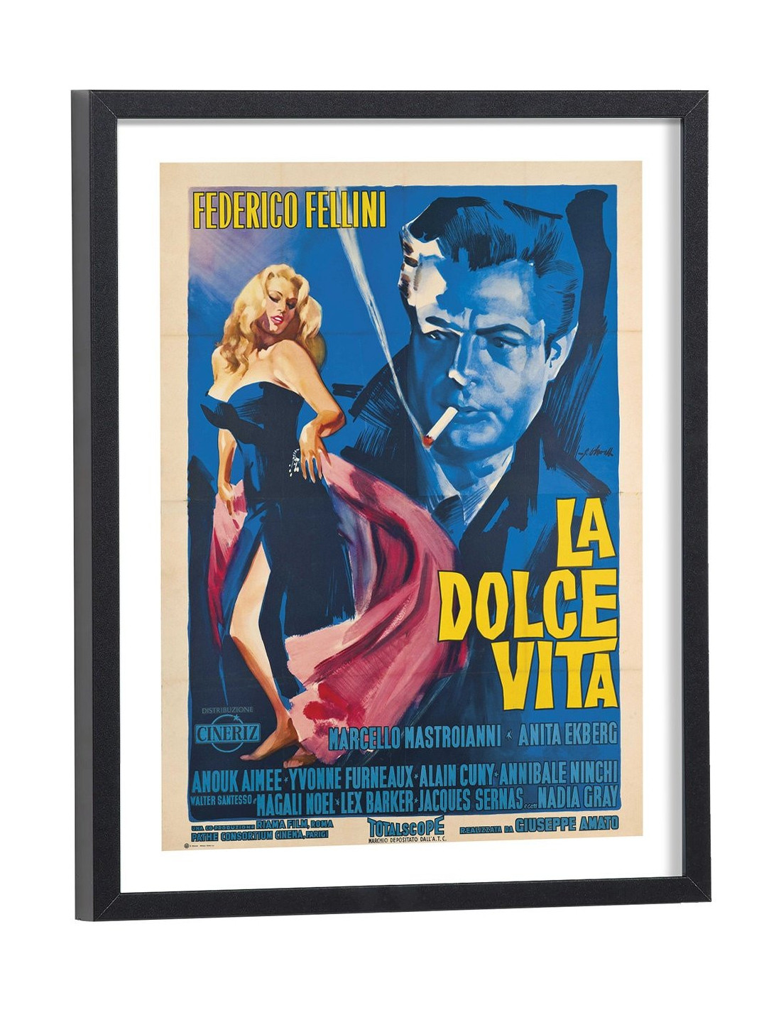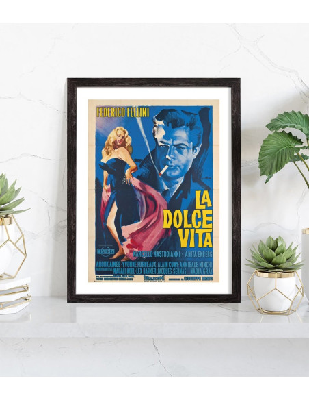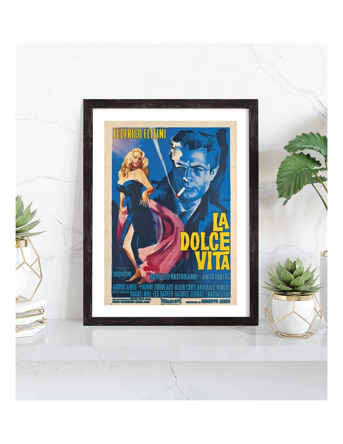 Affiche du film "La dolce vita" de Frederico Fellini. Affiche encadrée avec cadre en bois noir.