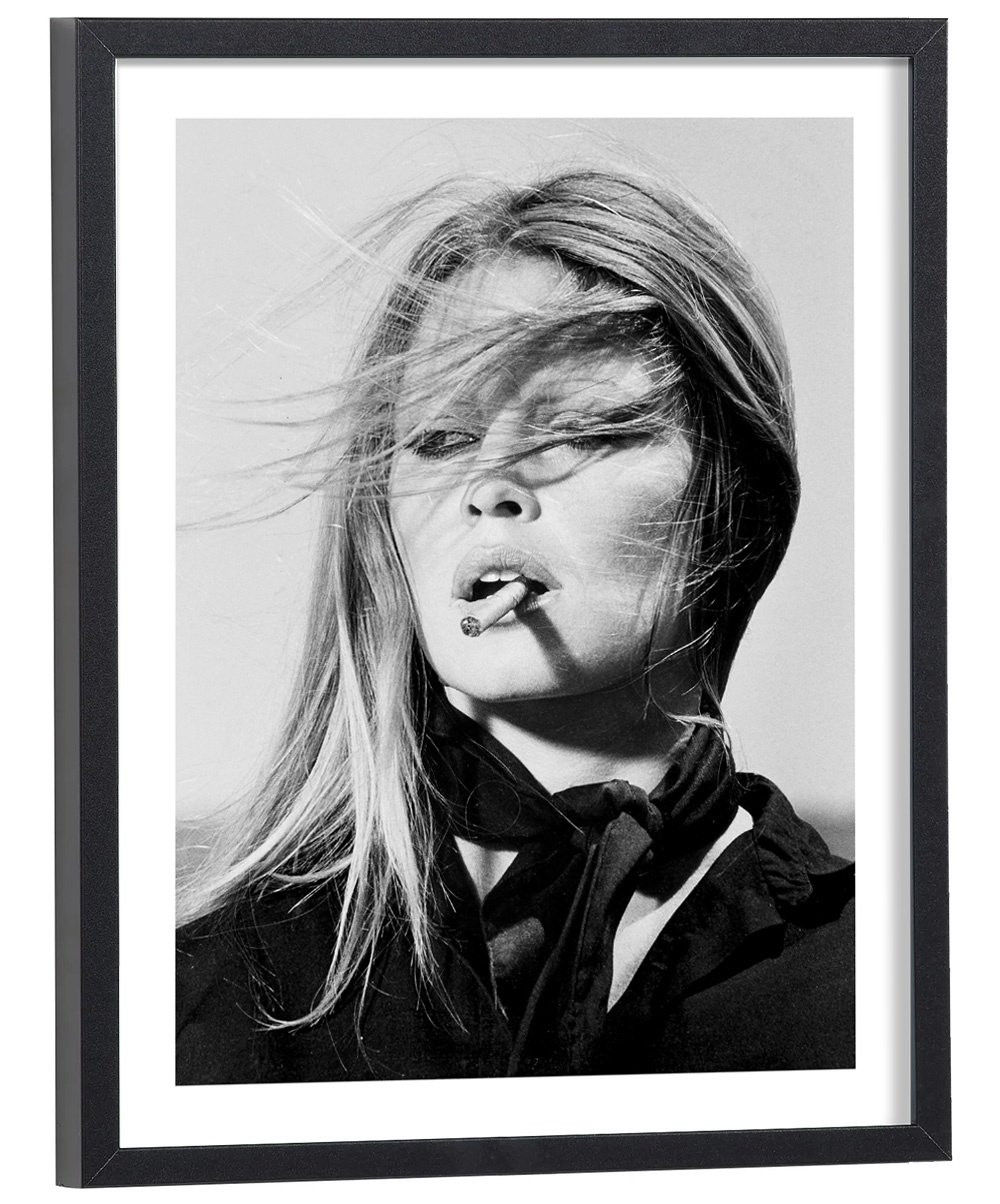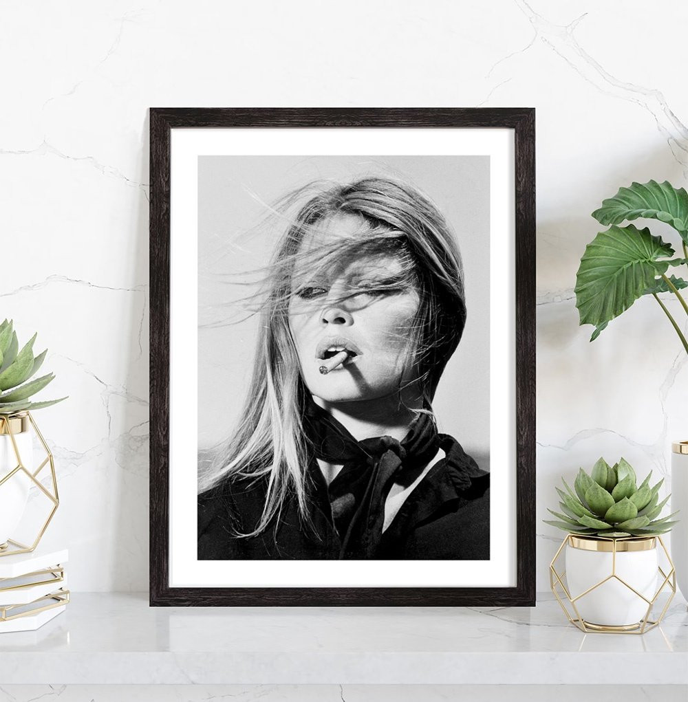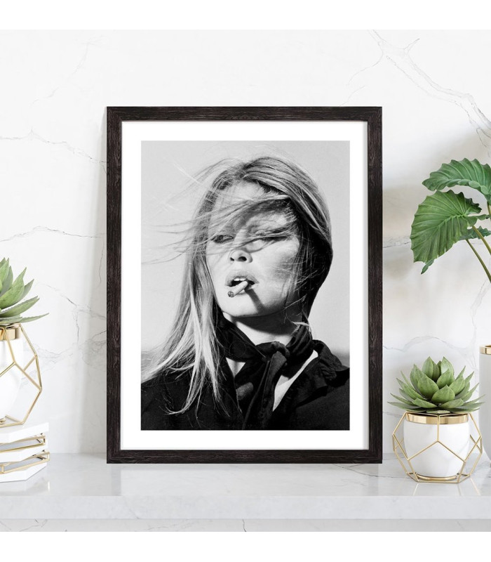 Tableau décoration vintage de Brigitte Bardot en train de fumer un cigare.