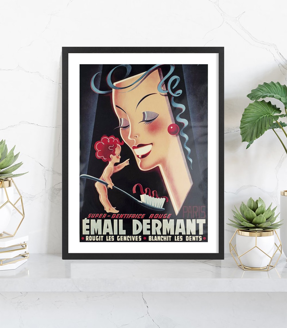 Plongez dans l'univers publicitaire des années 1930 avec l'affiche Email Dermant. Un poster vintage au charme parisien qui apportera une touche nostalgique à votre cuisine ou salle de bain.
