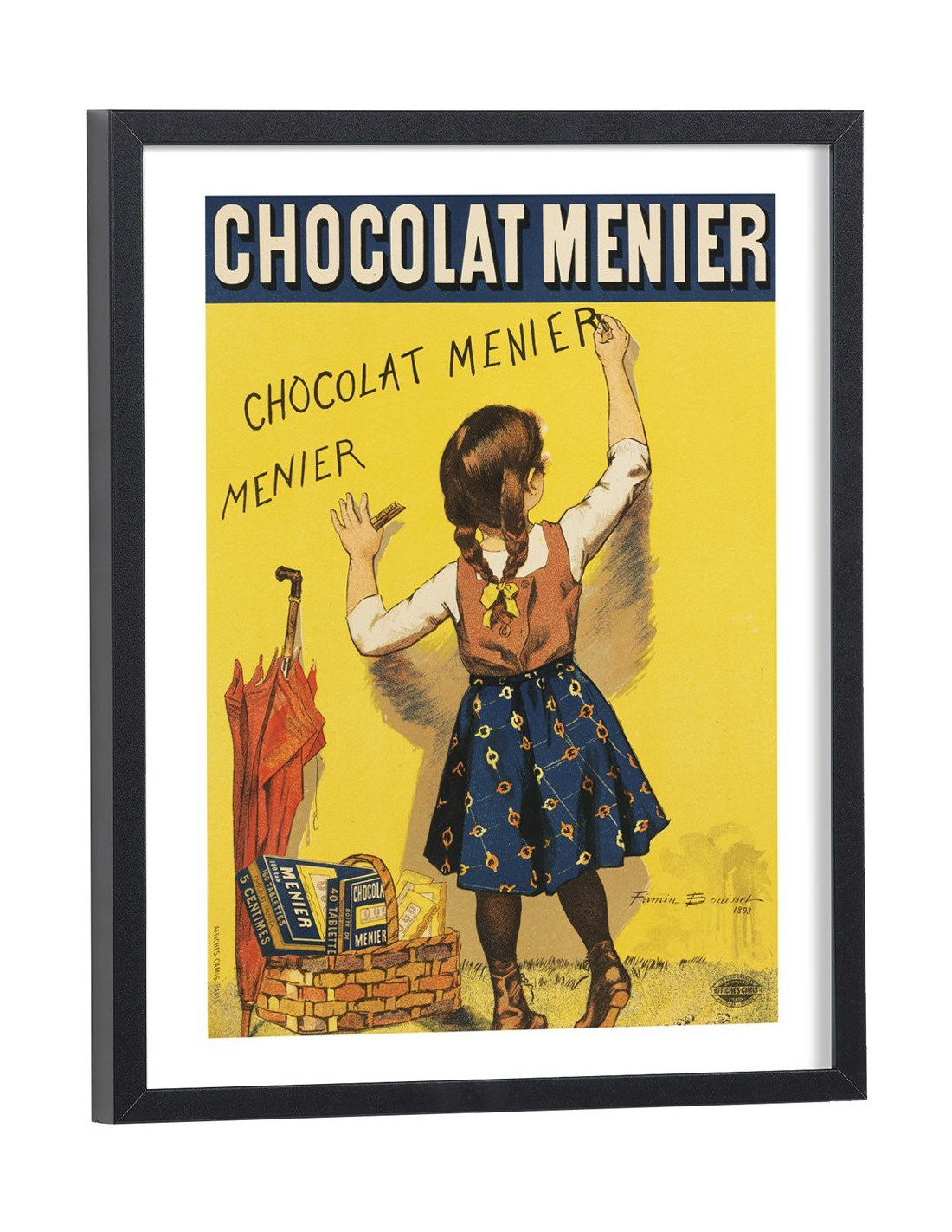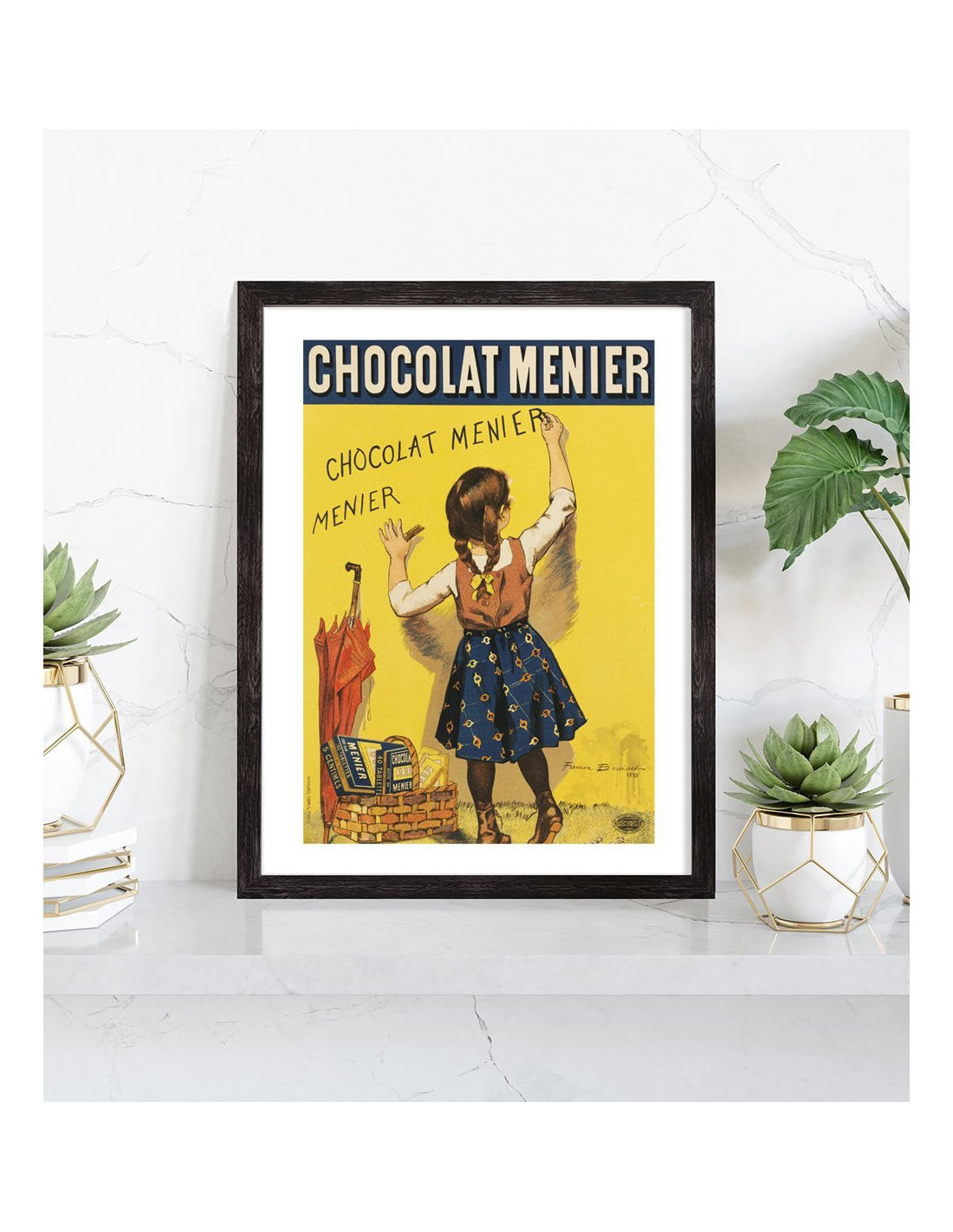Tableau décoration de l'affiche publicitaire vintage "Chocolat Meunier". Affiche de publicité ancienne. Affiche de cuisine vintage.