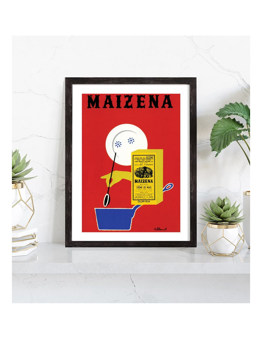 Tableau décoration de l'affiche publicitaire vintage "Maizena". Affiche de publicité ancienne. Affiche de cuisine vintage.