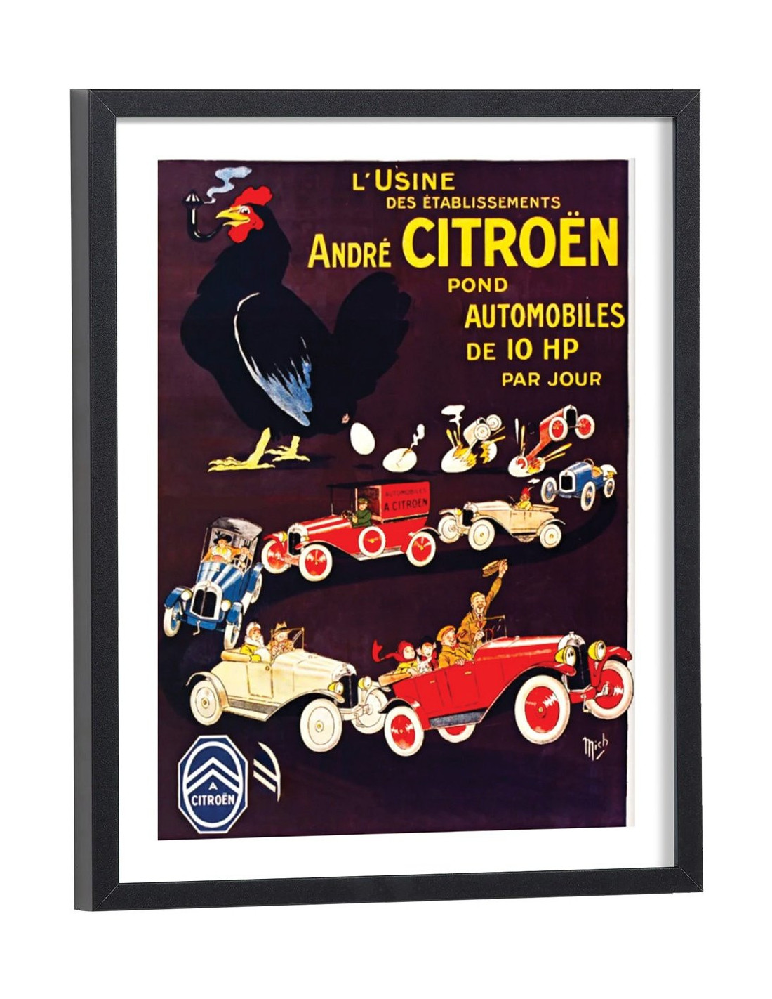 Tableau décoration de l'affiche publicitaire vintage "L'usine des établissement André CITROËN pond les automobiles de 10HP".