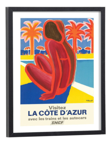 Tableau décoration de l'affiche publicitaire vintage "Visitez la Côte d'Azur" pour la SNCF.