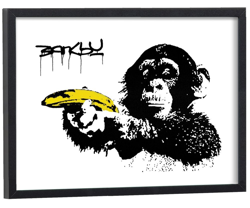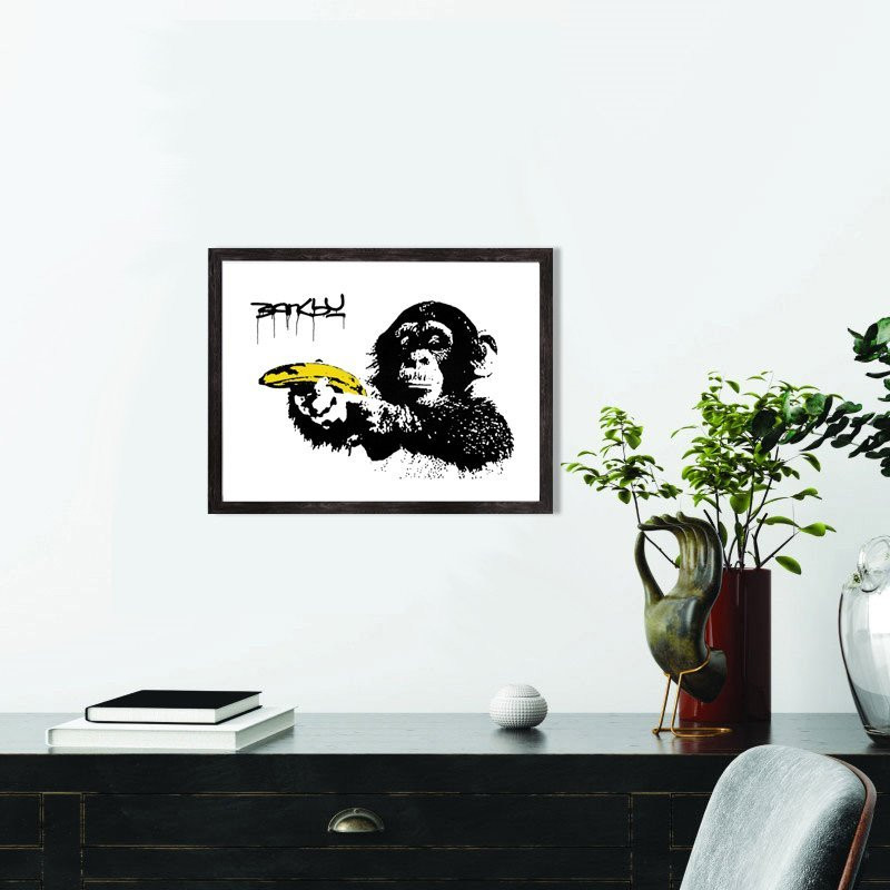 Tableau décoration de l'oeuvre de Banksy, "Monkey with Banana" représentant un singe avec une banane dans la main.
