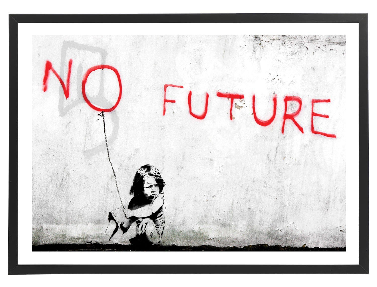 Tableau décoration de l'oeuvre de Banksy, "No future" représentant une petite fille tenant dans la main un ballon.