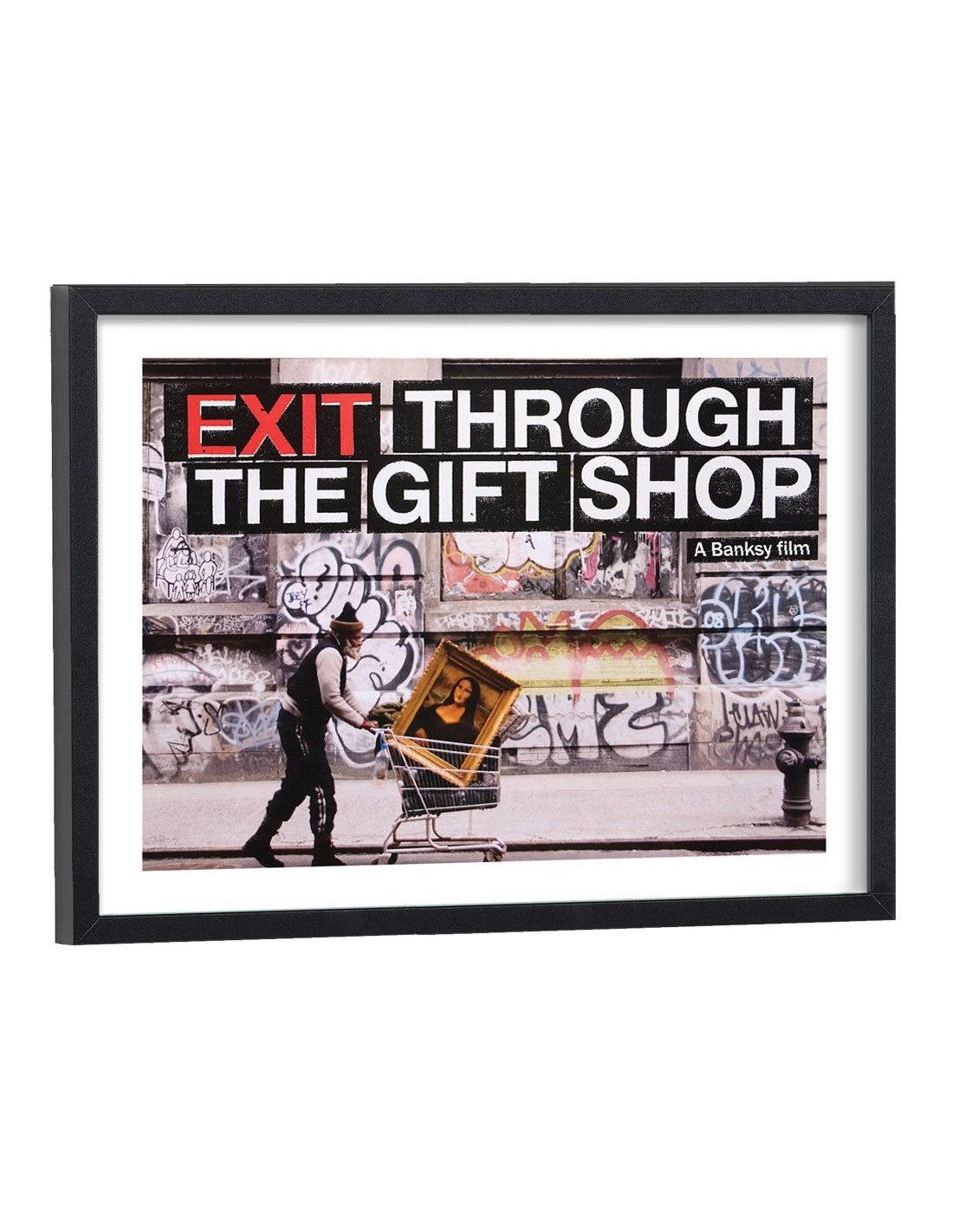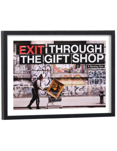 Affiche de Faites le mur ! (Exit Through the Gift Shop), film américano-britannique réalisé par Banksy, sorti au cinéma en 2010. Vendu avec encadrement en bois noir.