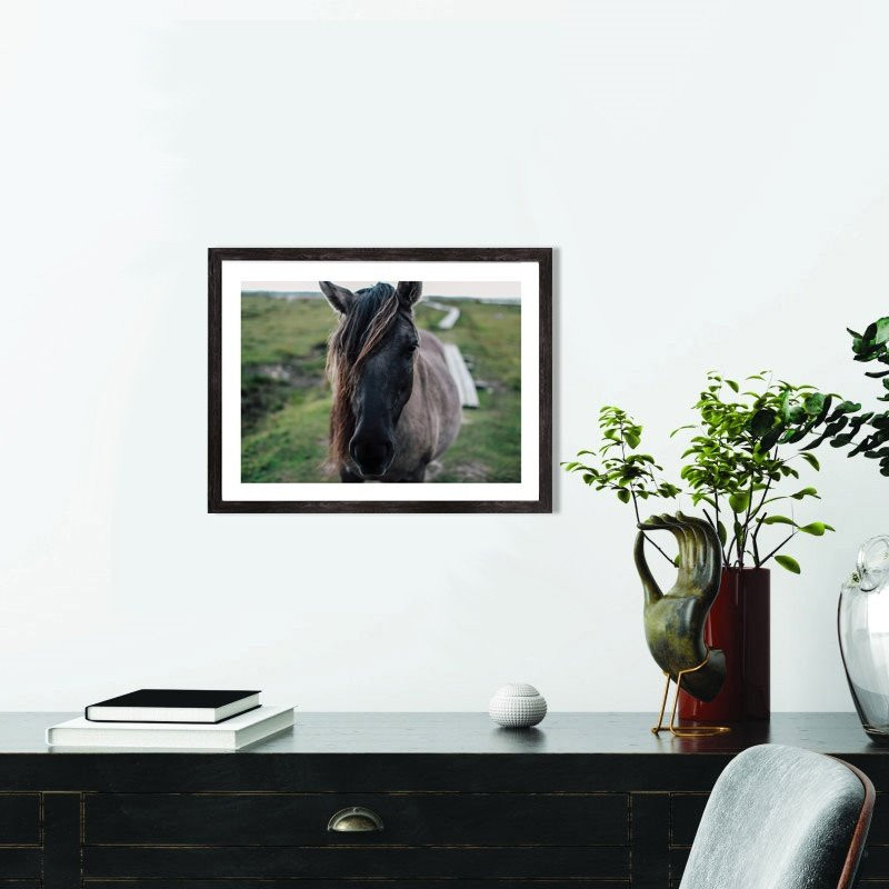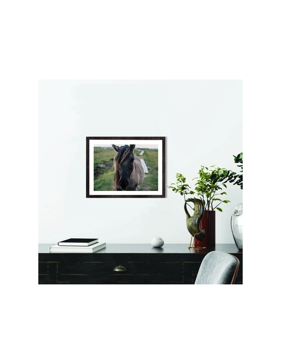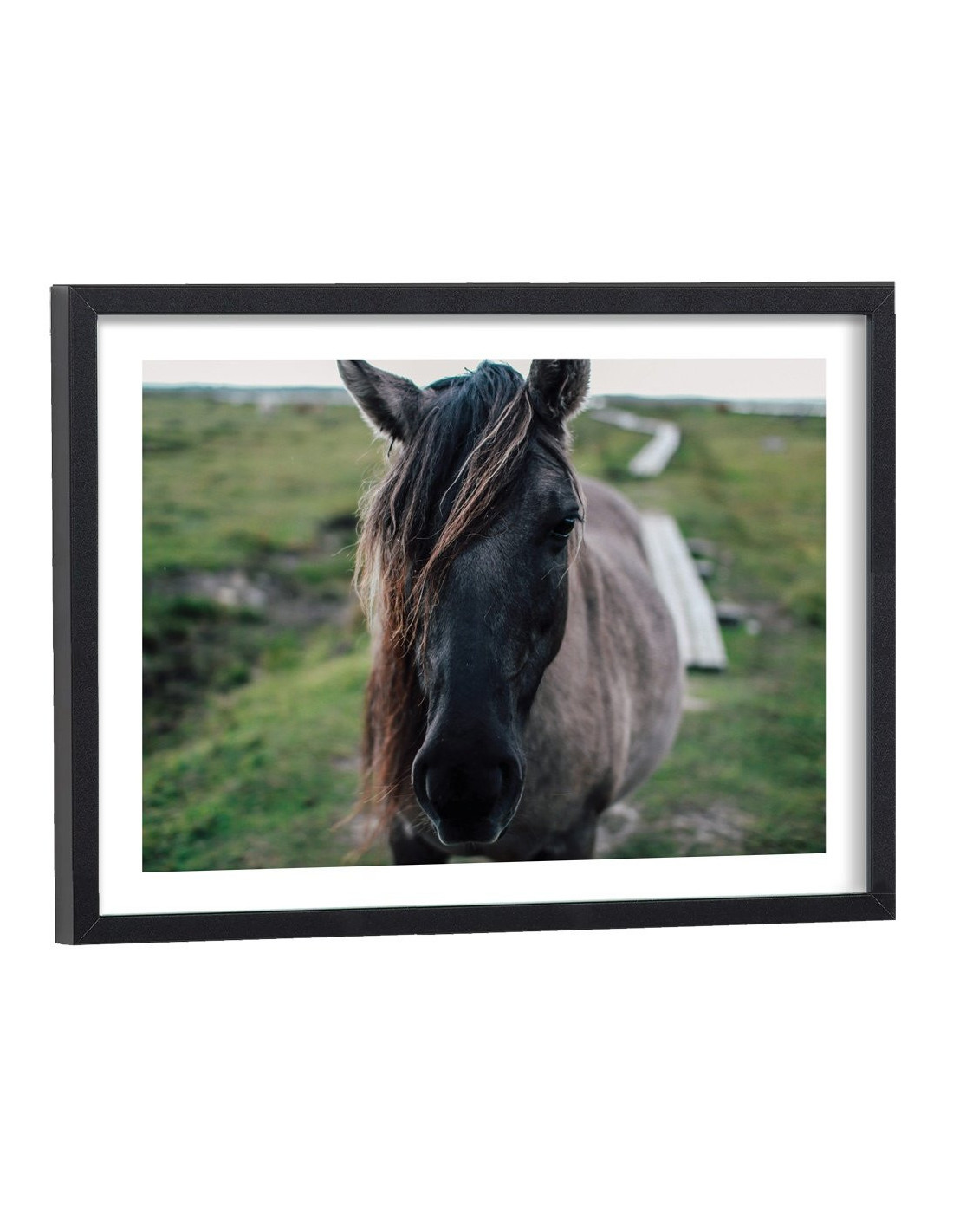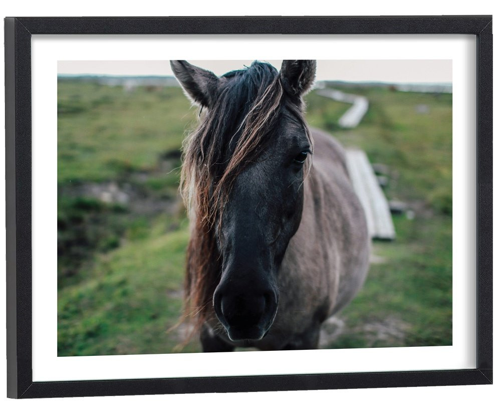 Tableau mural décoration d'un étalon gris dans la nature. Cette affiche encadrée décorera parfaitement votre intérieur.