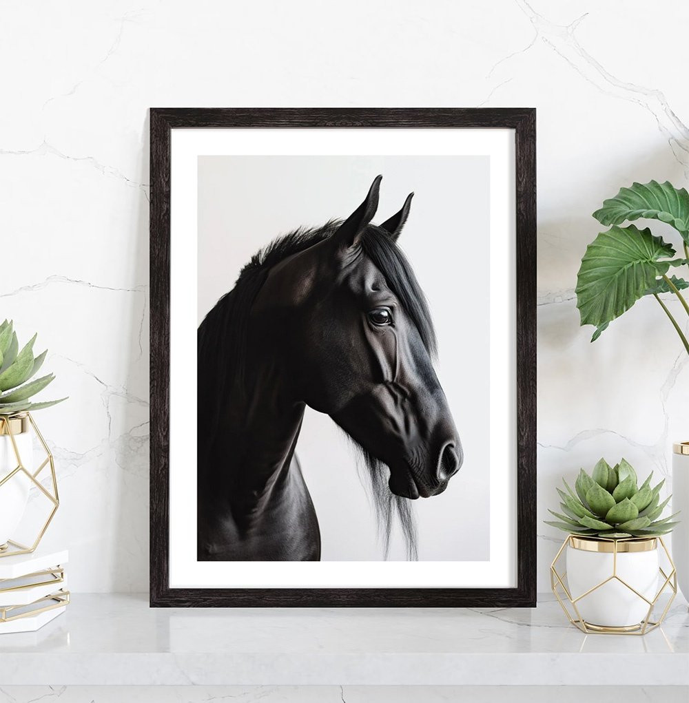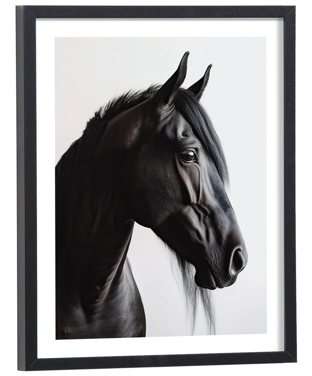 Tableau décoration d'une tête de cheval noir.