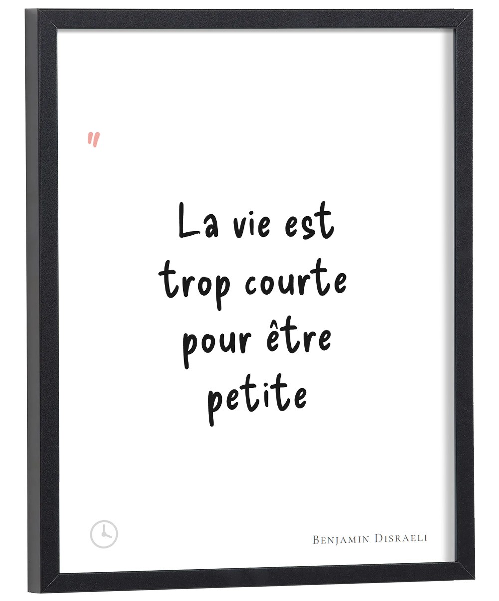 Affiche citation "La vie est trop courte pour être petite" Benjamin Disraeli.