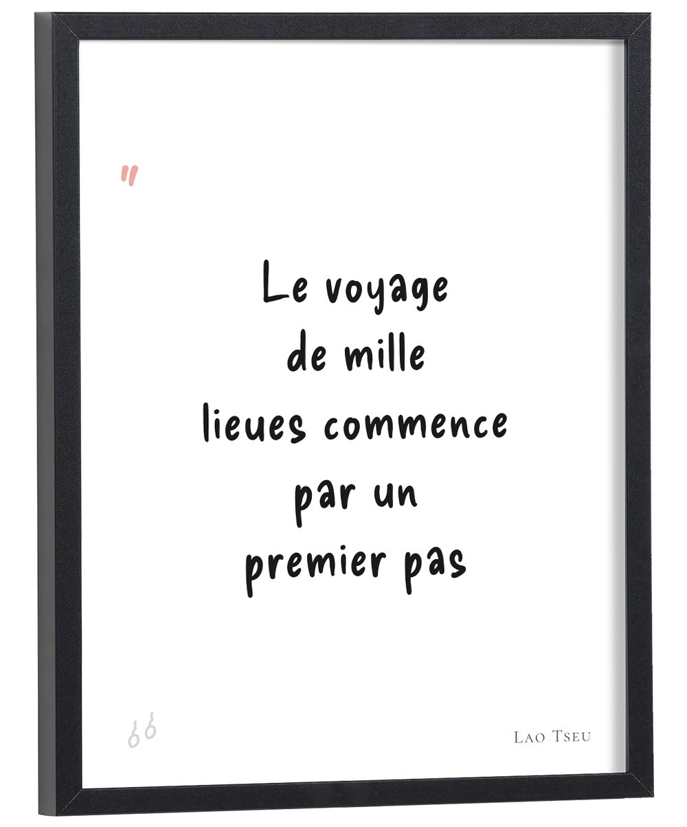 Affiche citation "Le voyage de mille lieues commence par un premier pas" Lao Tseu.