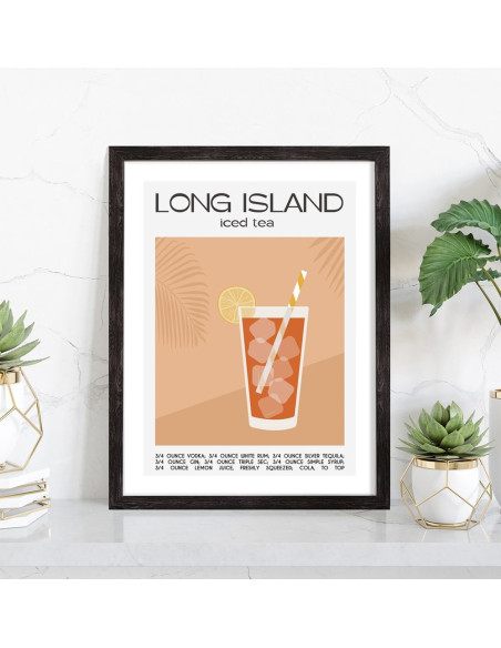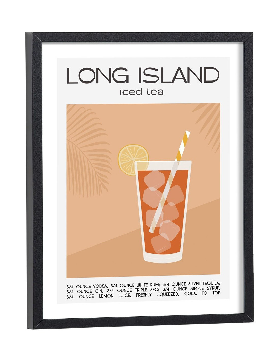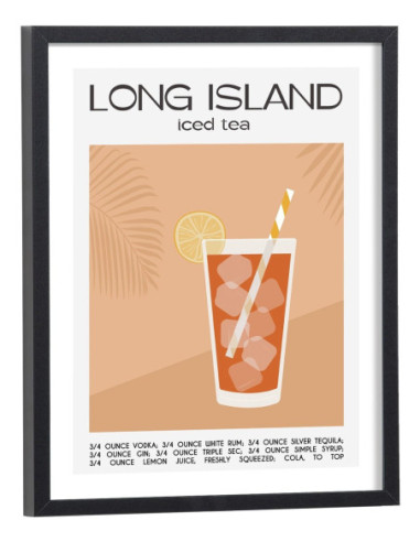 Affiche décoration du célèbre cocktail Long Island. Découvrez cette belle affiche vintage colorée qui contient une image du verre avec le cocktail Long Island, les ingrédients utilisés ainsi que la recette de ce cocktail. L'affiche est vendue avec l'encadrement.