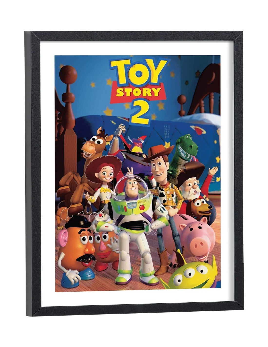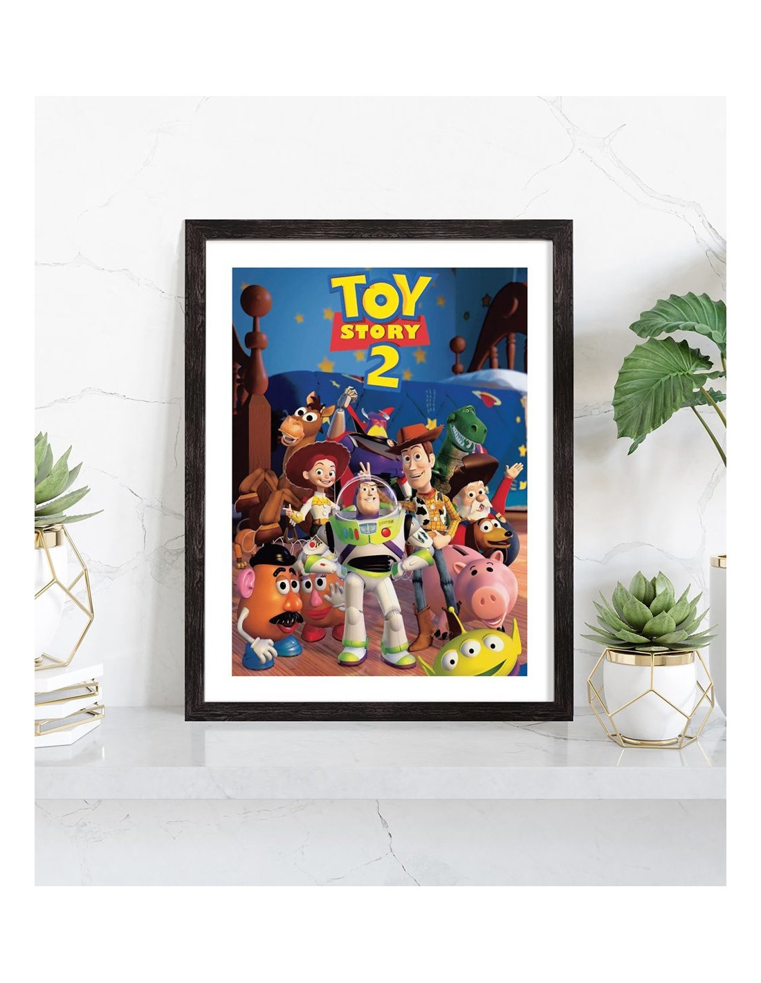 Affiche du film "Toy Story 2" sorti au cinéma en 1999. Affiche encadrée avec cadre en bois noir.