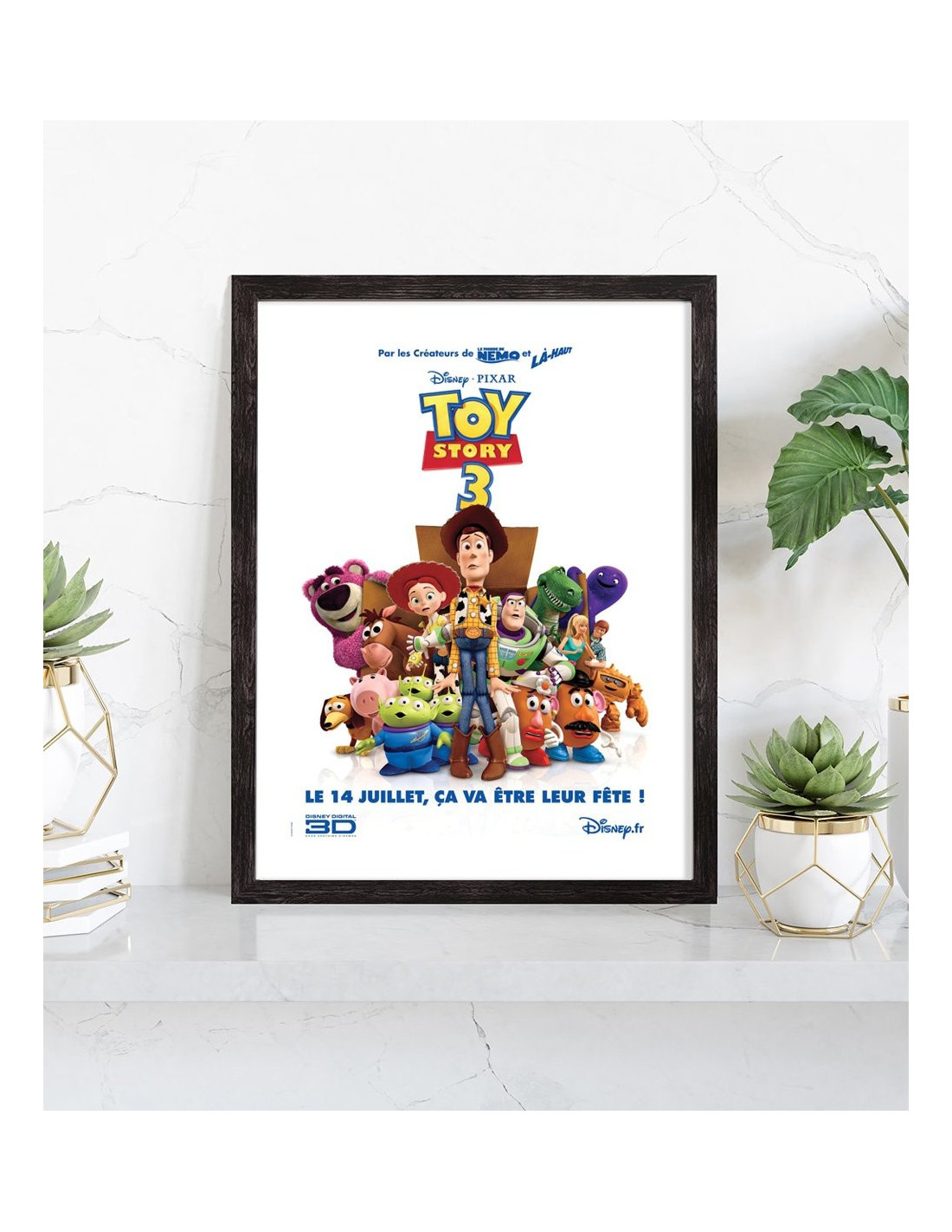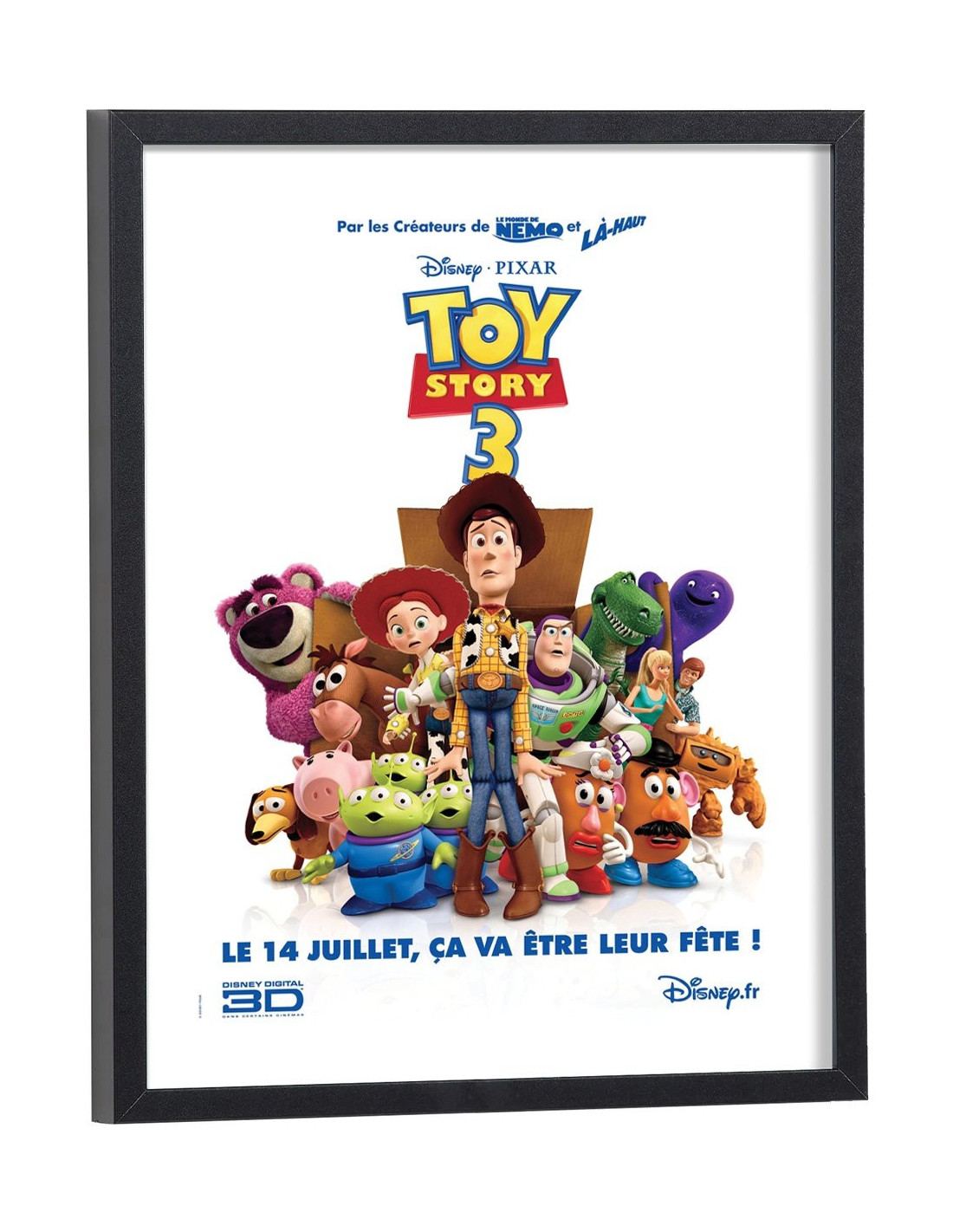 Affiche du film "Toy Story 3" sorti au cinéma en 2010. Affiche encadrée avec cadre en bois noir.