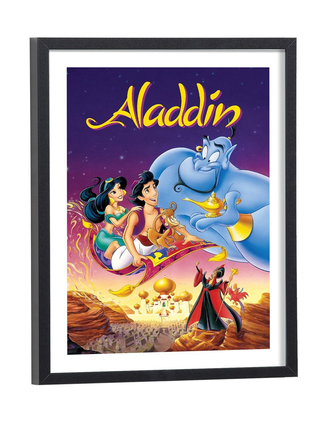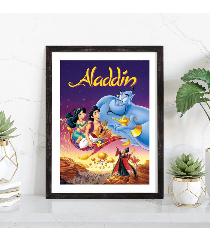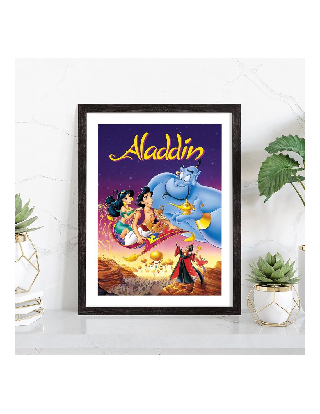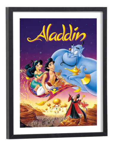 Affiche du film "Aladdin" des studios Disney Pixar. Affiche encadrée avec cadre en bois noir.