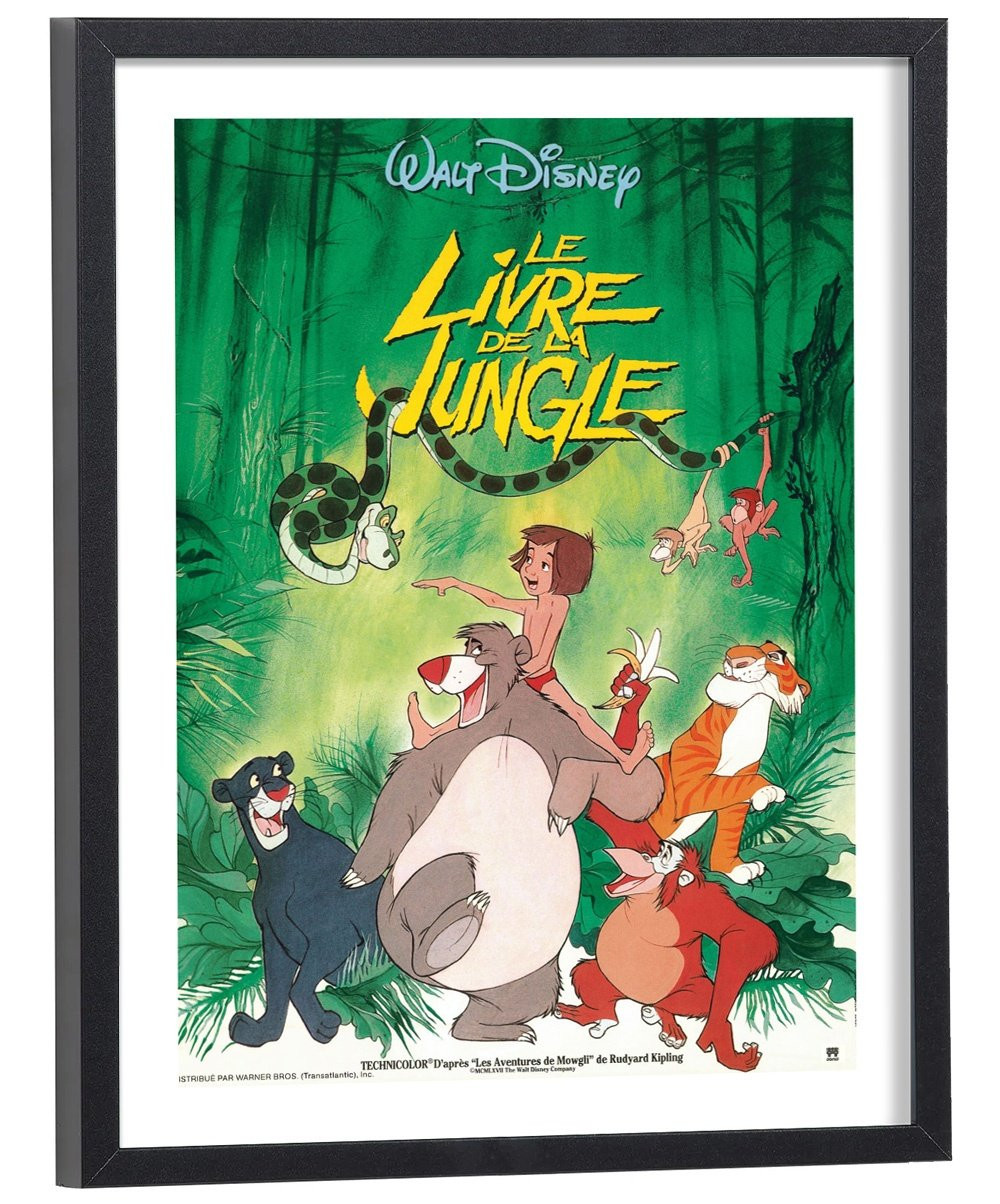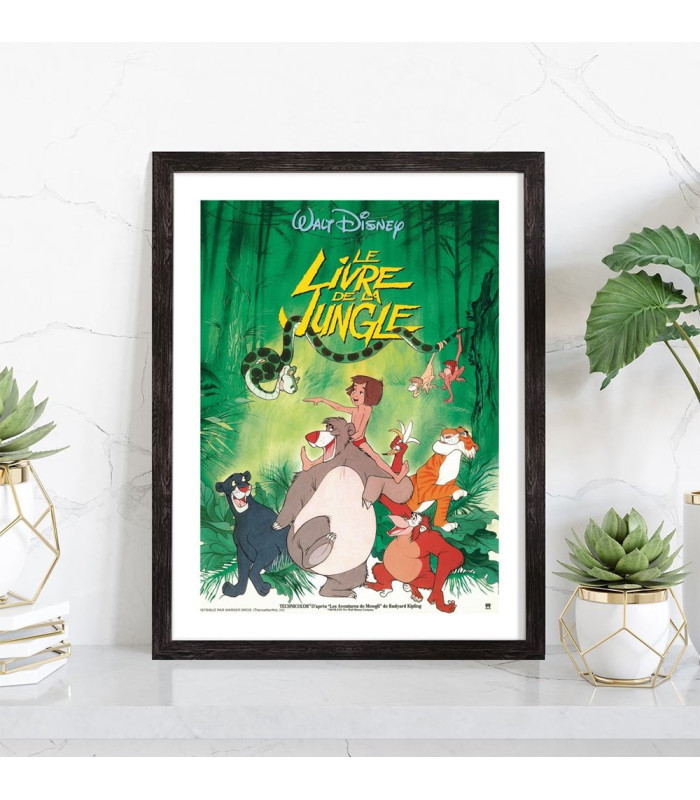 Affiche du film "Le livre de la jungle" des studios Disney. Affiche encadrée avec cadre en bois noir.