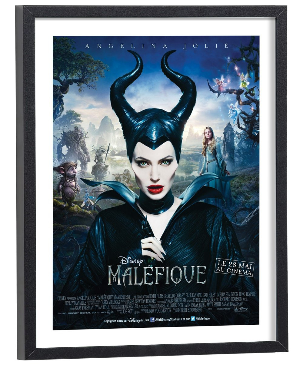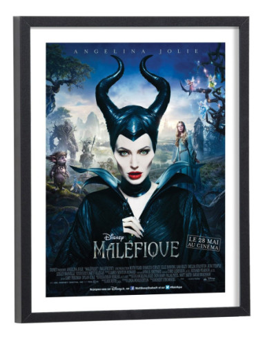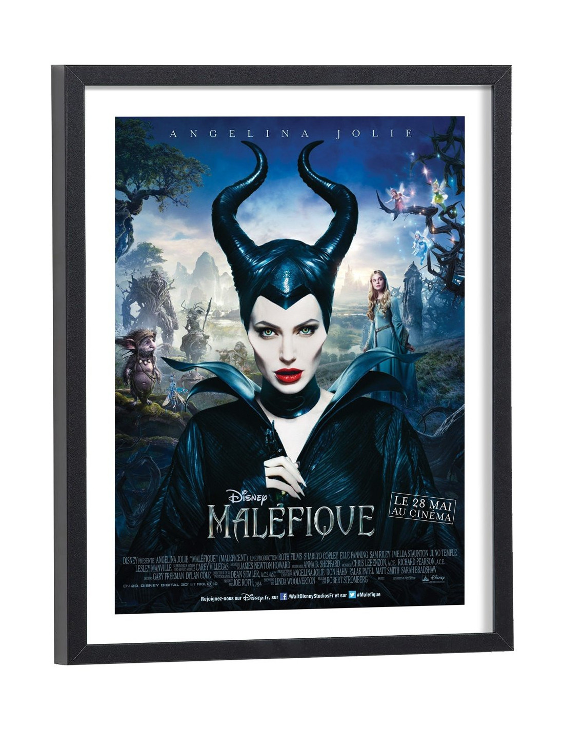 Affiche du film "Maléfique" des studios Disney Pixar. Affiche encadrée avec cadre en bois noir.