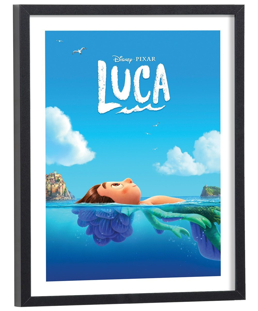 Affiche du film "Luca" des studios Disney Pixar. Affiche encadrée avec cadre en bois noir.