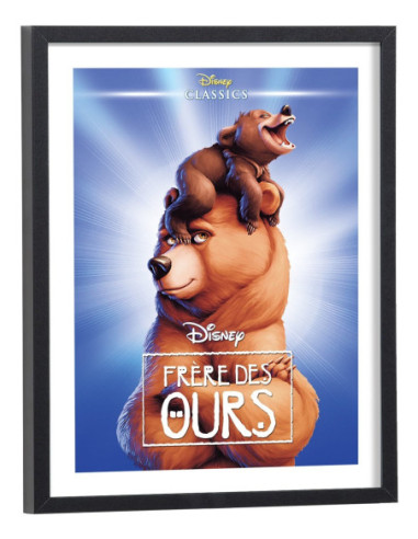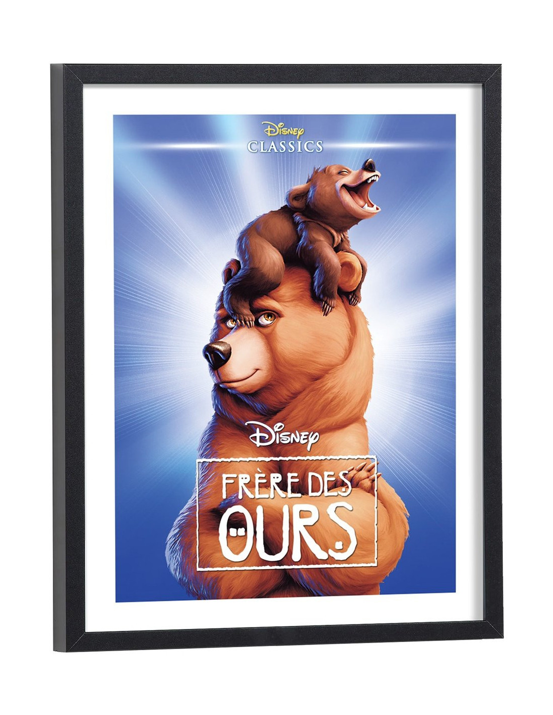 Affiche du film "Frère des Ours" des studios Disney Pixar. Affiche encadrée avec cadre en bois noir.