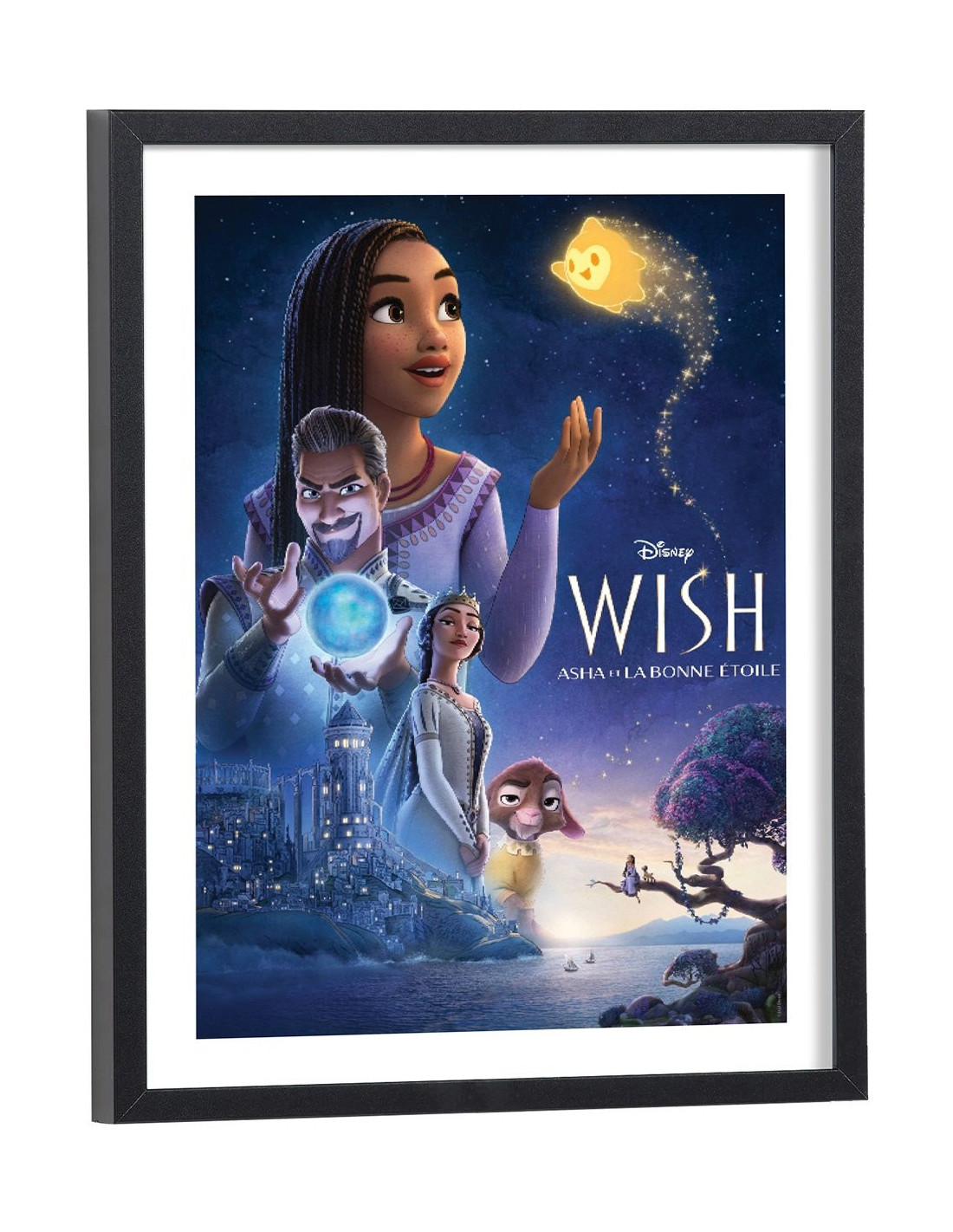 Affiche du film "Wish" des studios Disney Pixar. Affiche encadrée avec cadre en bois noir.