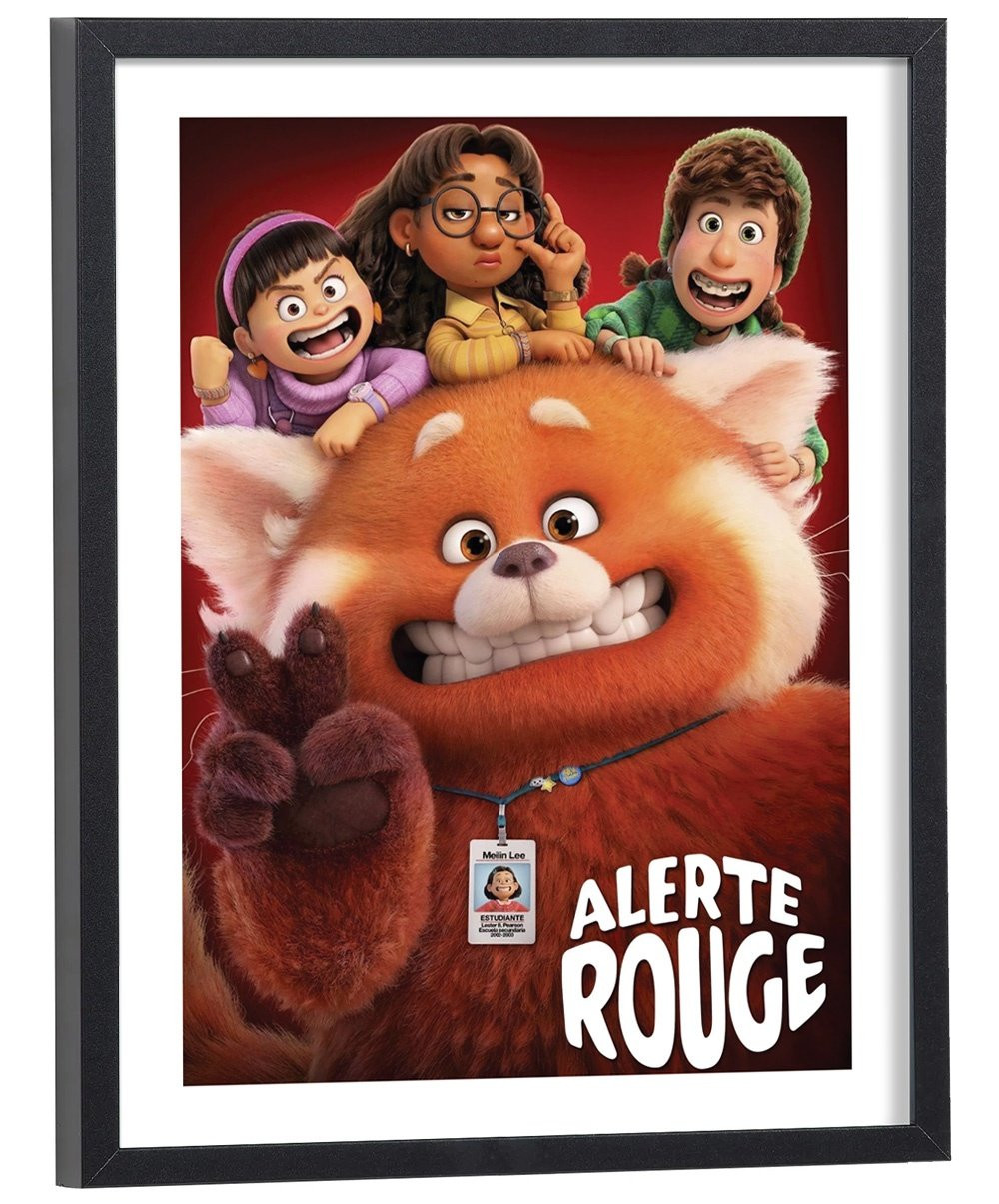 Affiche du film "Alerte rouge" des studios Disney Pixar. Affiche encadrée avec cadre en bois noir.