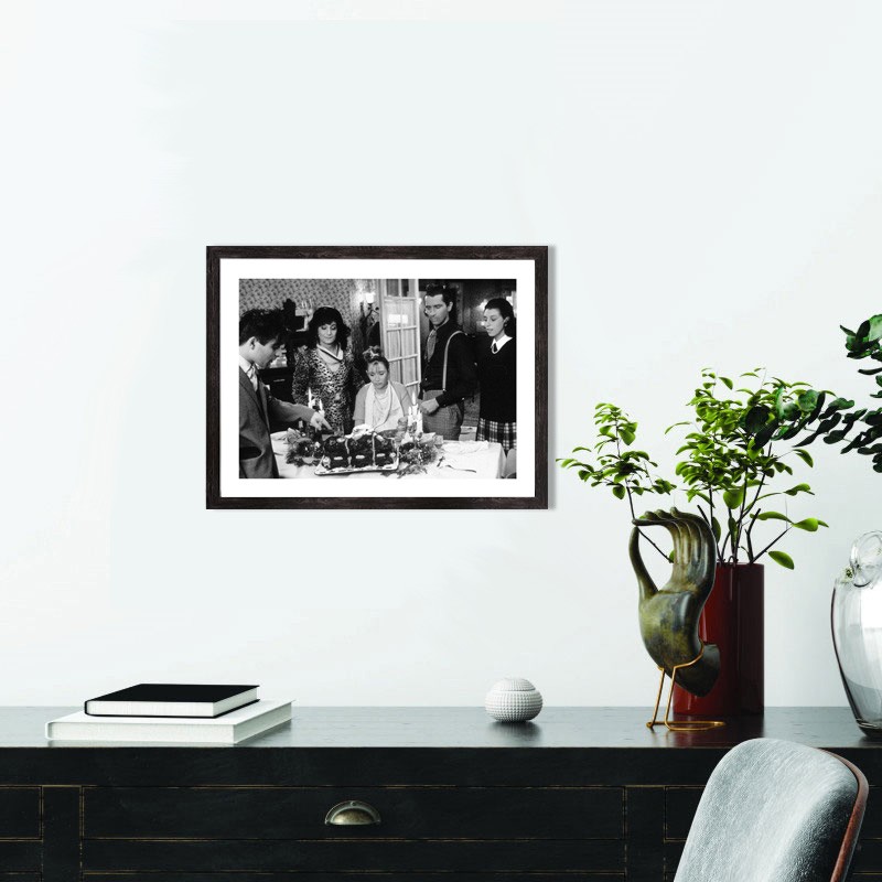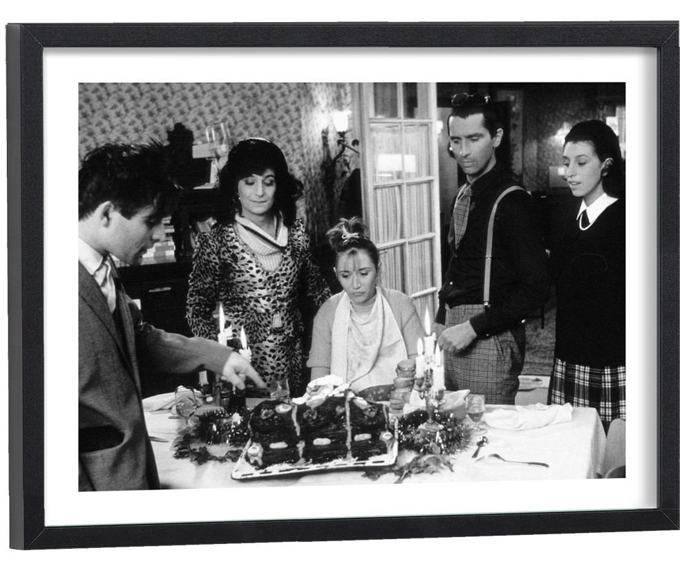 Plongez dans l'univers intemporel du cinéma français avec l'affiche du Père Noël est une Ordure présentant la fameuse scène du gâteau d'anniversaire. La photographie noir et blanc capture parfaitement l'ambiance théâtrale et l'expression des personnages emblématiques de la troupe du Splendid. Les contrastes subtils et la composition soignée révèlent toute la poésie de l'humour français des années 80.