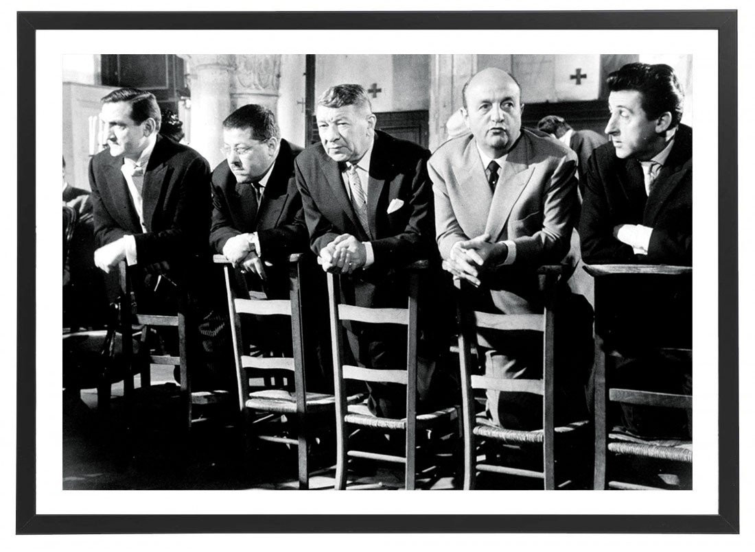 Tableau décoration vintage du film "Les tontons flingueurs" lors de la scène à l'église, en 1963.