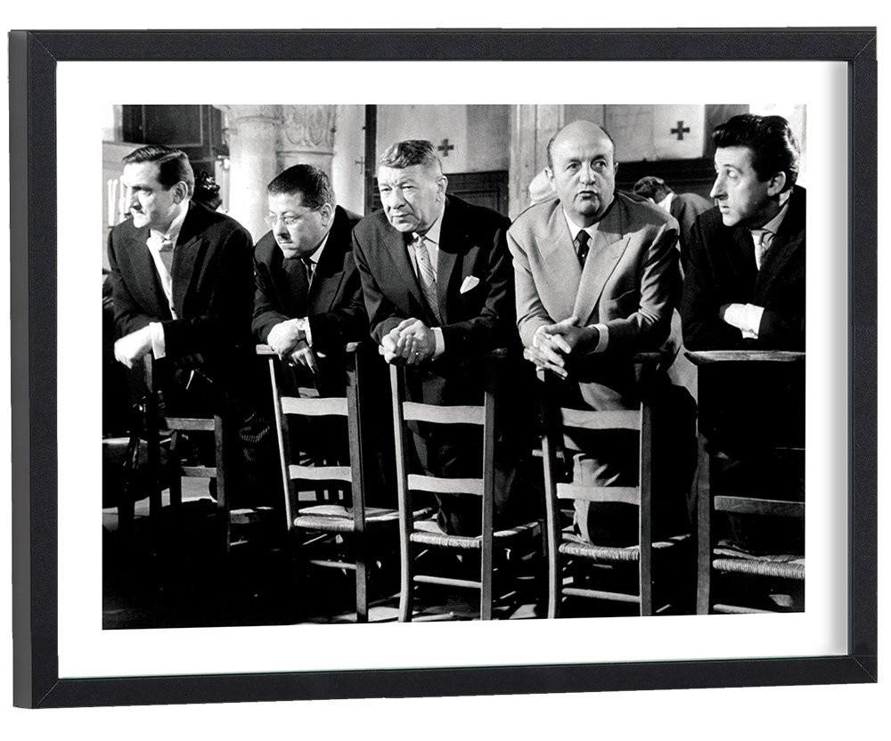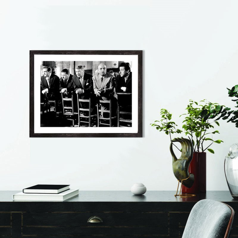 Tableau décoration vintage du film "Les tontons flingueurs" lors de la scène à l'église, en 1963.