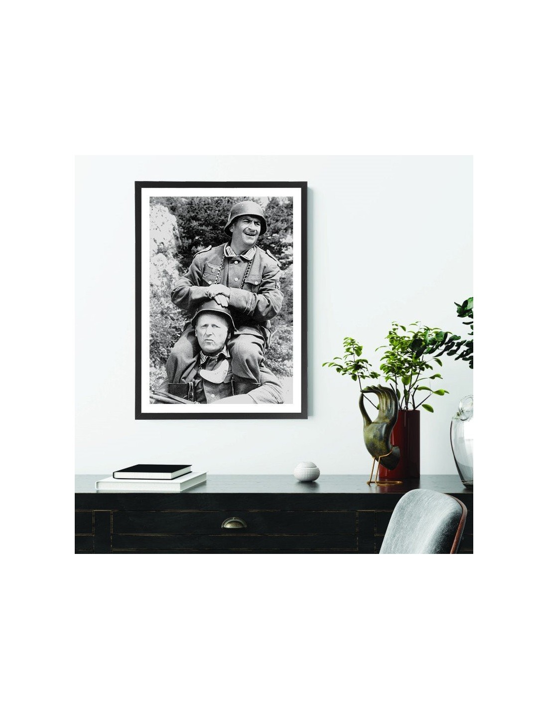 Affichez dans votre intérieur l'un des films les plus cultes du cinéma français : La grande vadrouille ! Replongez dans l'univers de "La grande vadrouille" avec ce poster encadré en noir et blanc où l'on retrouve Louis de Funès sur les épaules de Bourvil. Le film "La Grande Vadrouille", réalisé par Gérard Oury, est sorti en 1966. Cette photographie culte issue d'une scène du film est remplie de nostalgie. Cette affiche la grande vadrouille sera parfaite pour décorer votre salon, votre bureau ou votre couloir. Vos invités seront ravis de retrouver ces acteurs cultes.