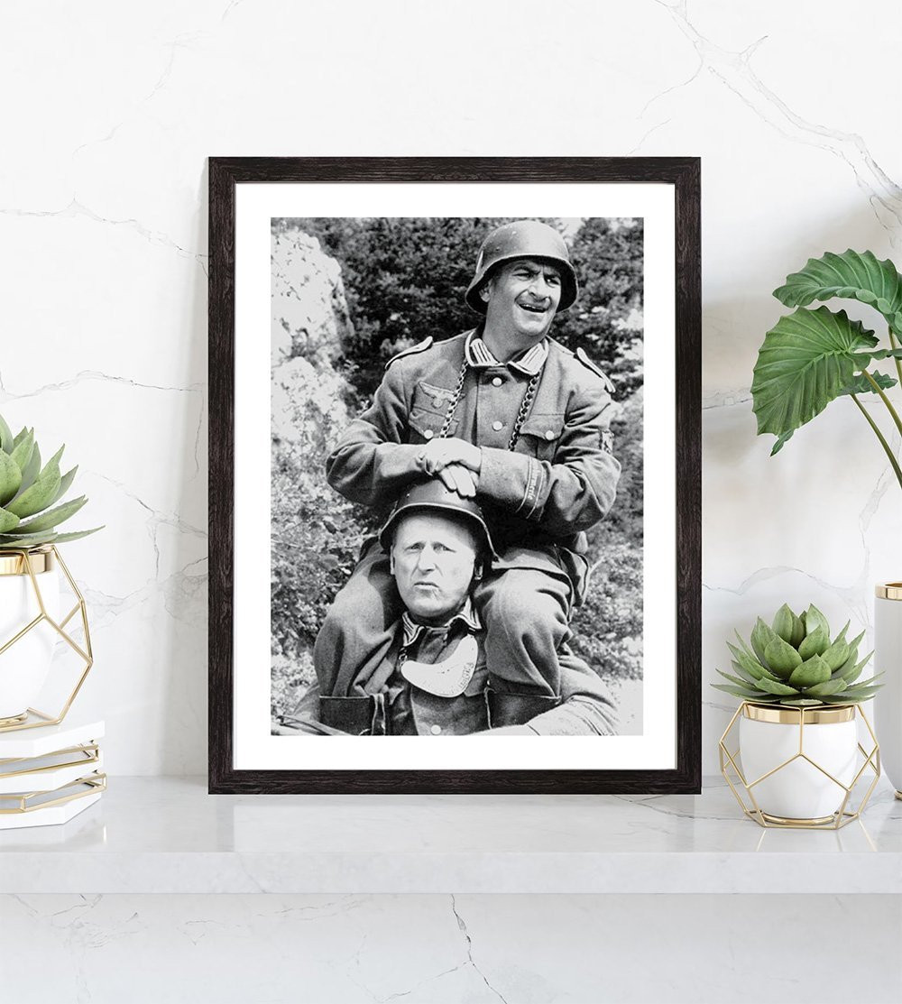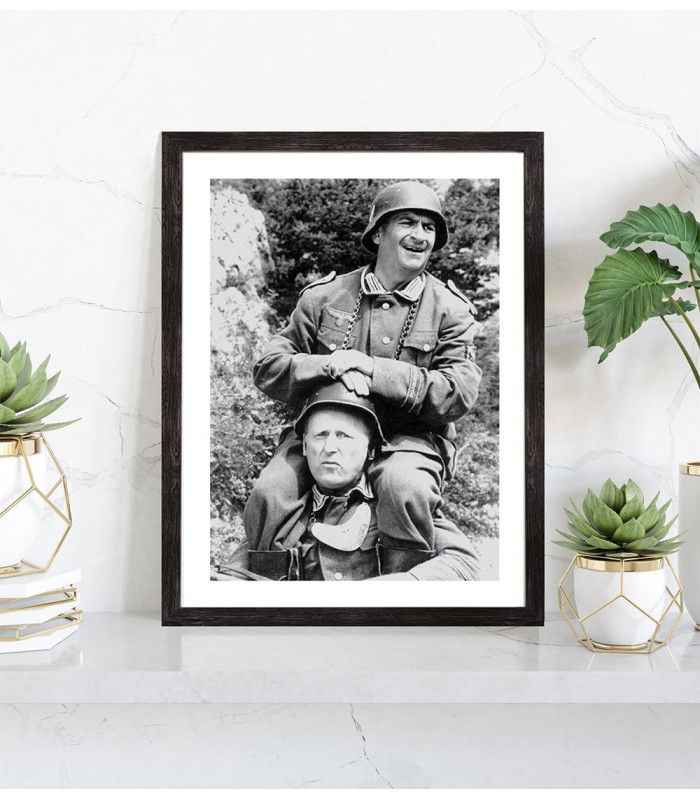 Affichez dans votre intérieur l'un des films les plus cultes du cinéma français : La grande vadrouille ! Replongez dans l'univers de "La grande vadrouille" avec ce poster encadré en noir et blanc où l'on retrouve Louis de Funès sur les épaules de Bourvil. Le film "La Grande Vadrouille", réalisé par Gérard Oury, est sorti en 1966. Cette photographie culte issue d'une scène du film est remplie de nostalgie. Cette affiche la grande vadrouille sera parfaite pour décorer votre salon, votre bureau ou votre couloir. Vos invités seront ravis de retrouver ces acteurs cultes.