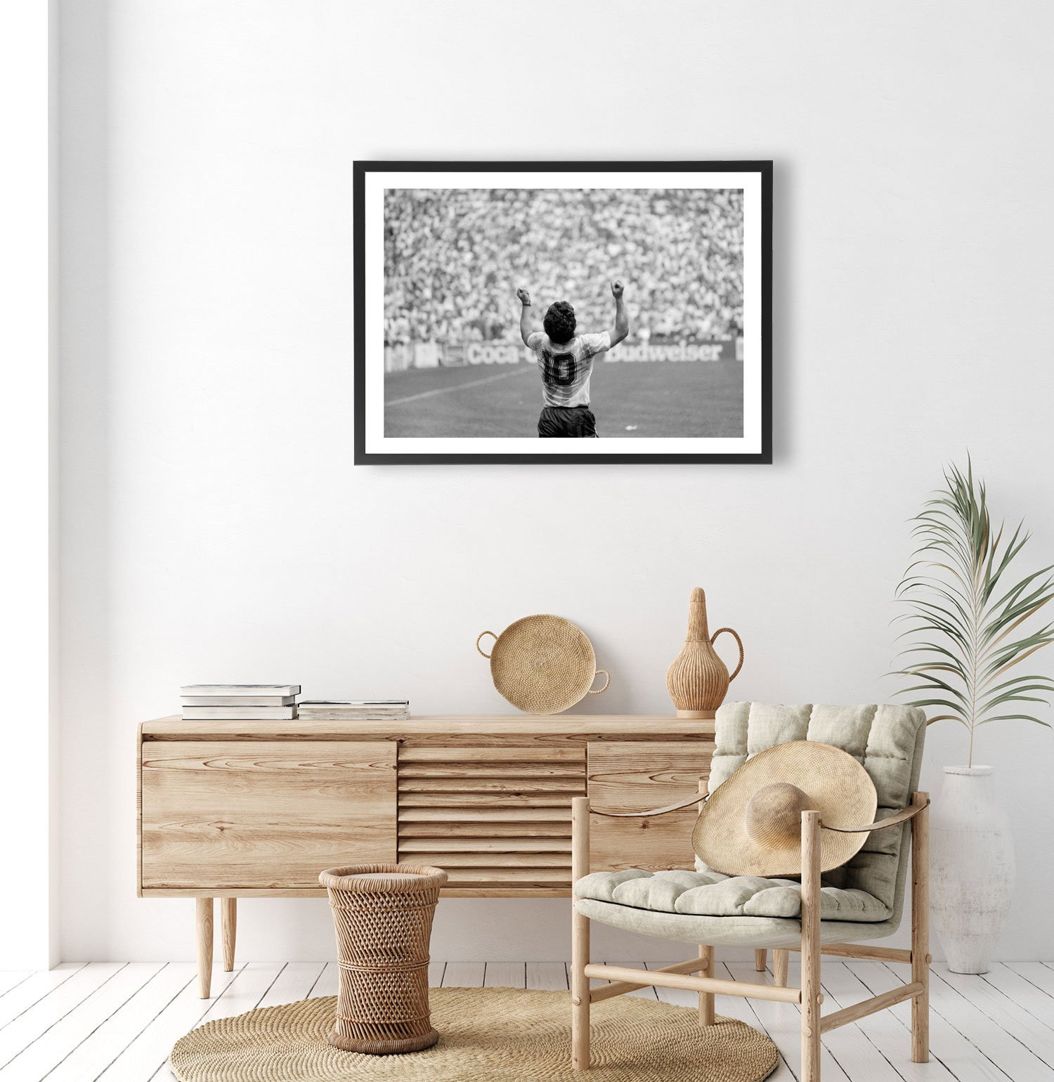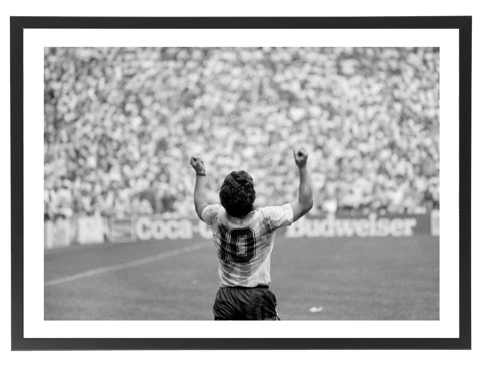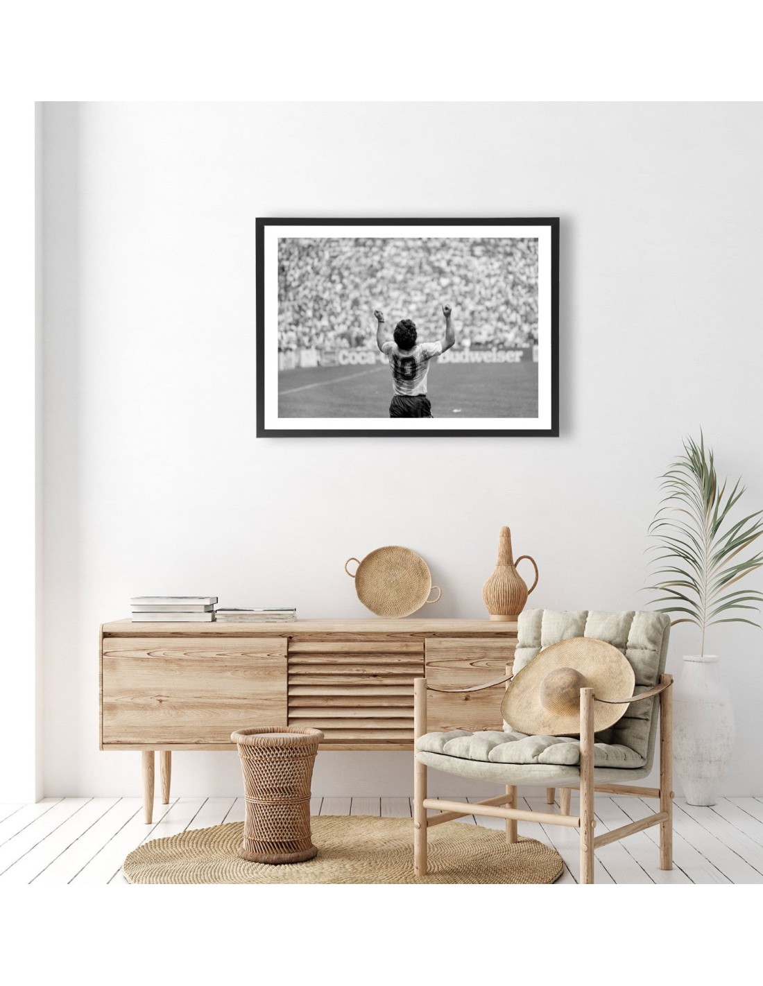 Tableau décoration vintage noir et blanc de Diego Maradona lors d'un match de football avec l'équipe nationale d'Argentine.