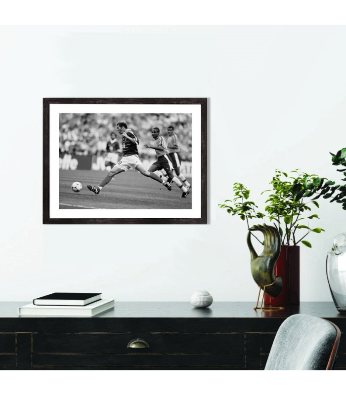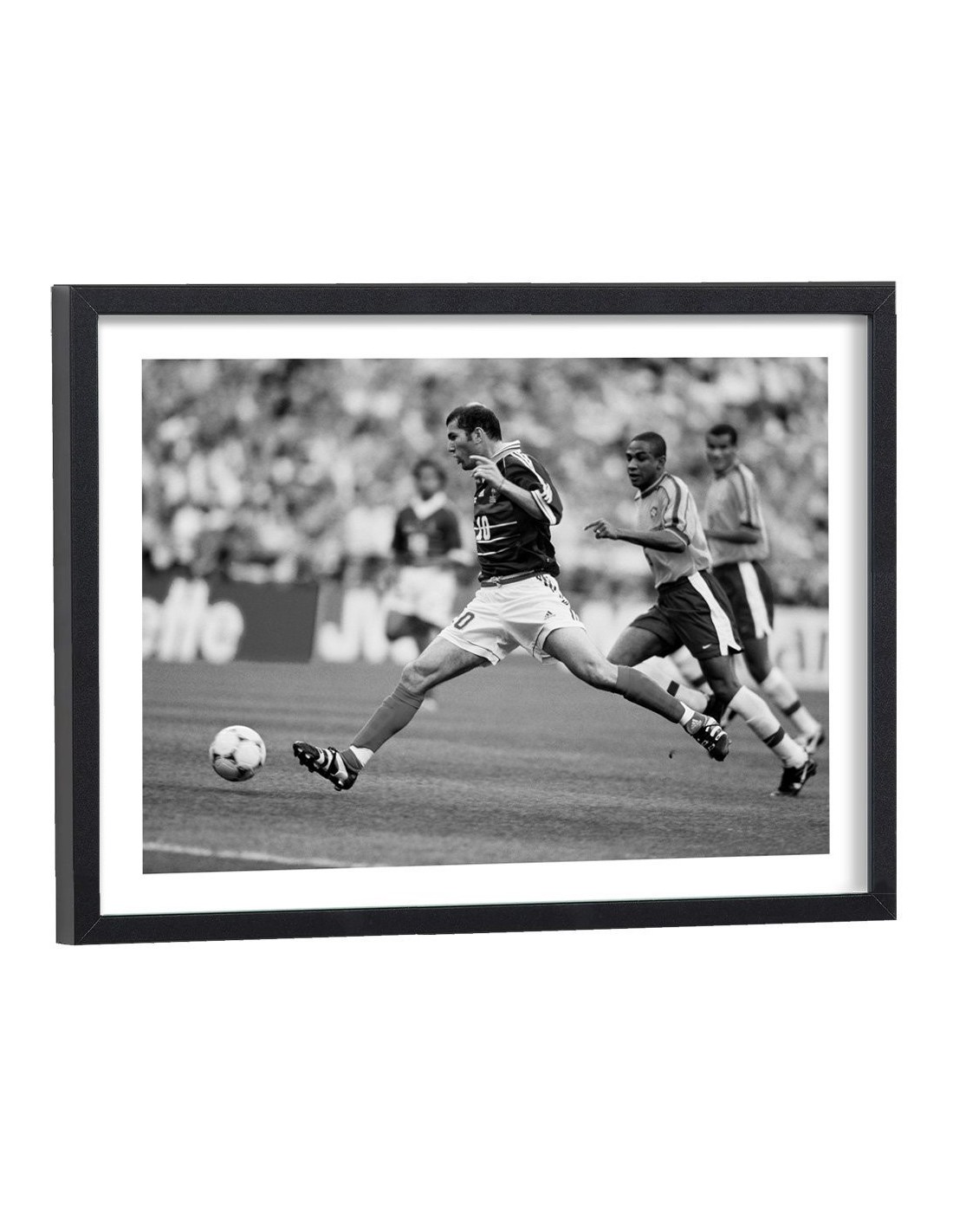 Nous vous proposons ce magnifique tableau de Zinedine Zidane en noir et blanc avec l'équipe de France lors de la coupe du monde de football 1998 face au Brésil. Ce tableau de Zidane est mythique car ce match est certainement le plus grand match de sa vie, match qui permettra à l'équipe de France de remporter sa première coupe du monde grâce à deux buts de Zidane marqués de la tête. C'est ce match qui fera de Zizou l'un des plus grands footballeurs de tous les temps et qui lui permettra de remporter le ballon d'or en 1998.