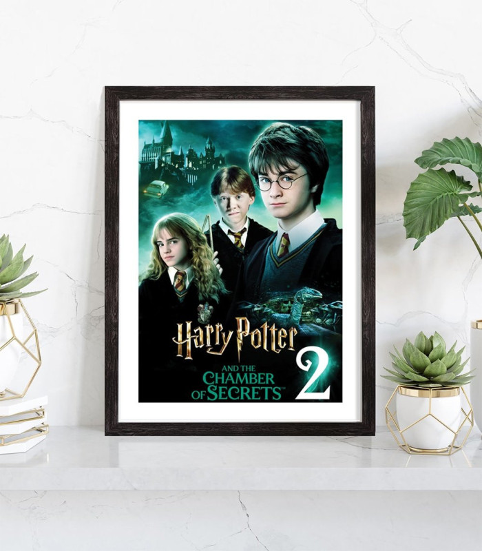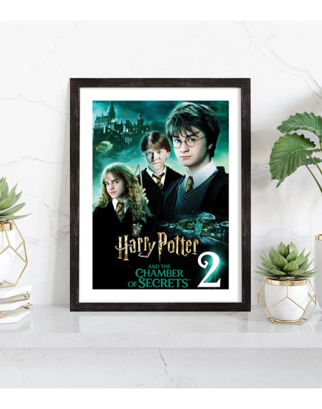 Affiche du film "Harry Potter et la Chambre des secrets". Affiche encadrée avec cadre en bois noir.