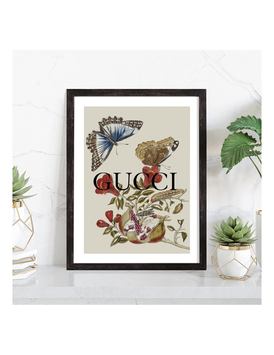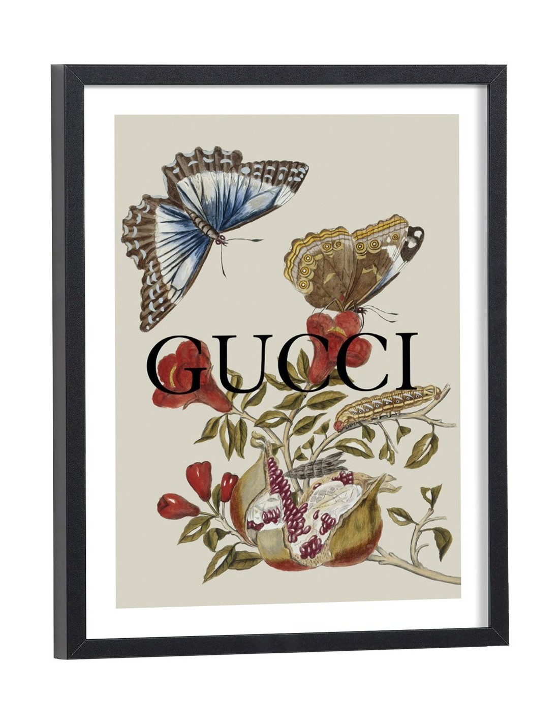 Tableau décoration mode Gucci coloré avec des papillons artistiques.