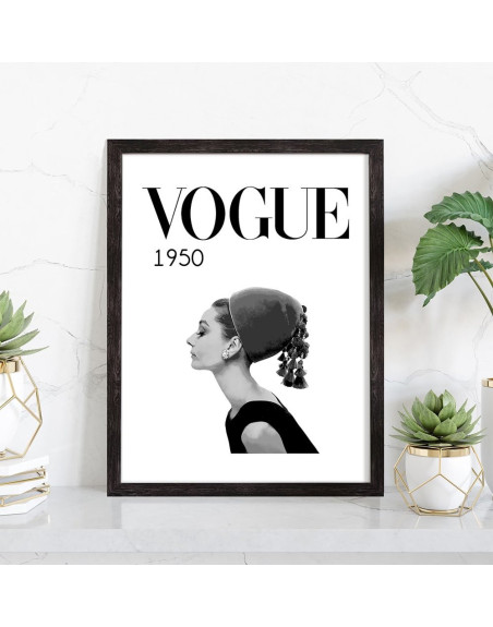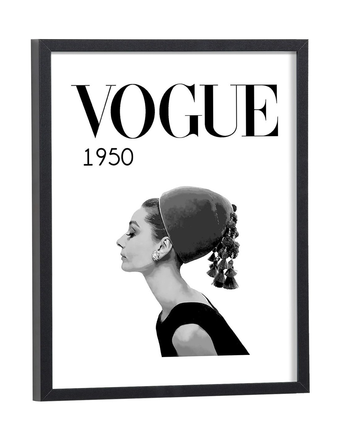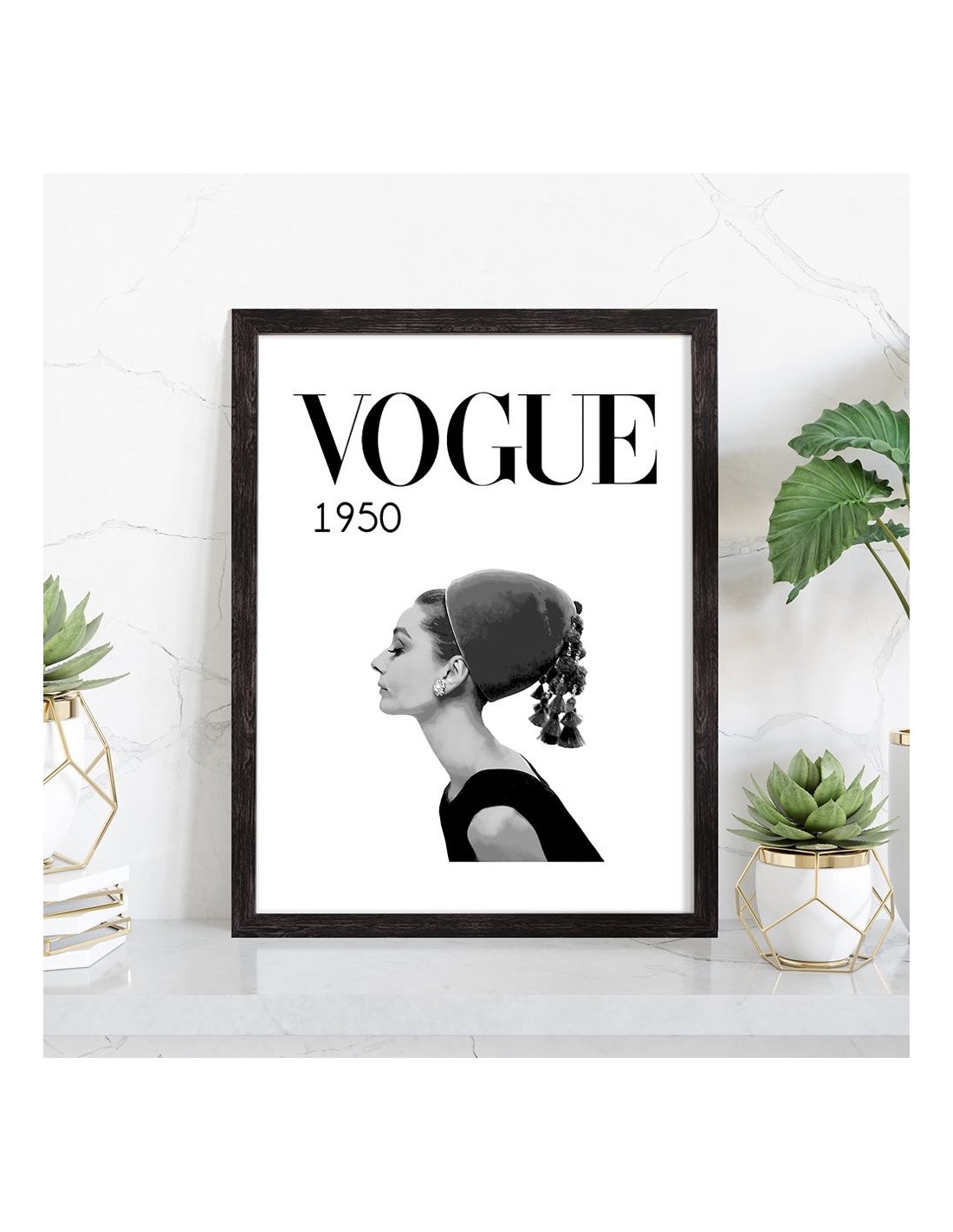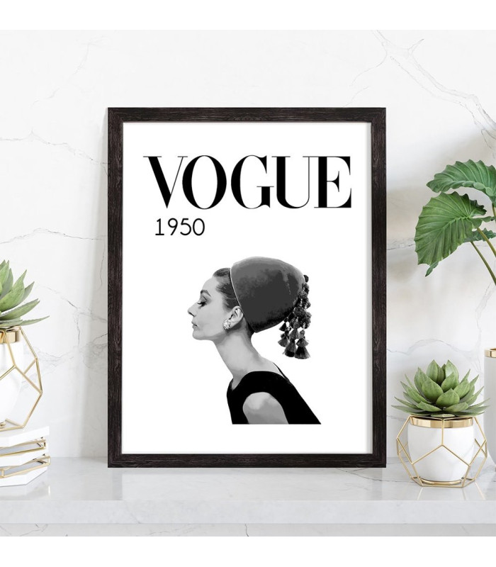 Tableau décoration mode "Vogue 1950" en noir et blanc avec un modèle féminin.