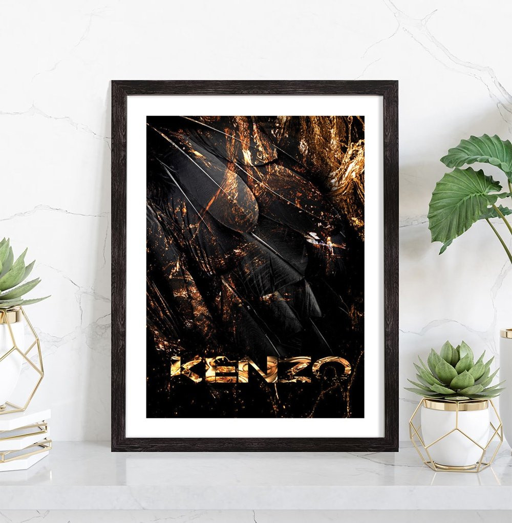 Tableau décoration mode Kenzo avec un fond décoratif jungle.