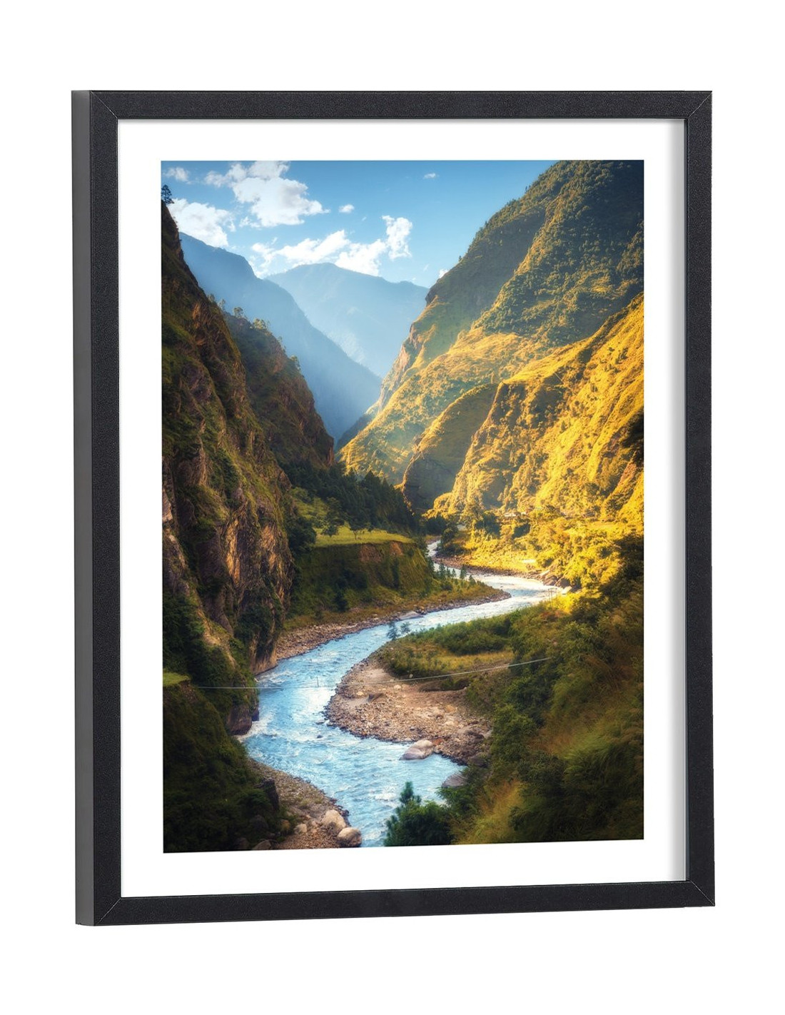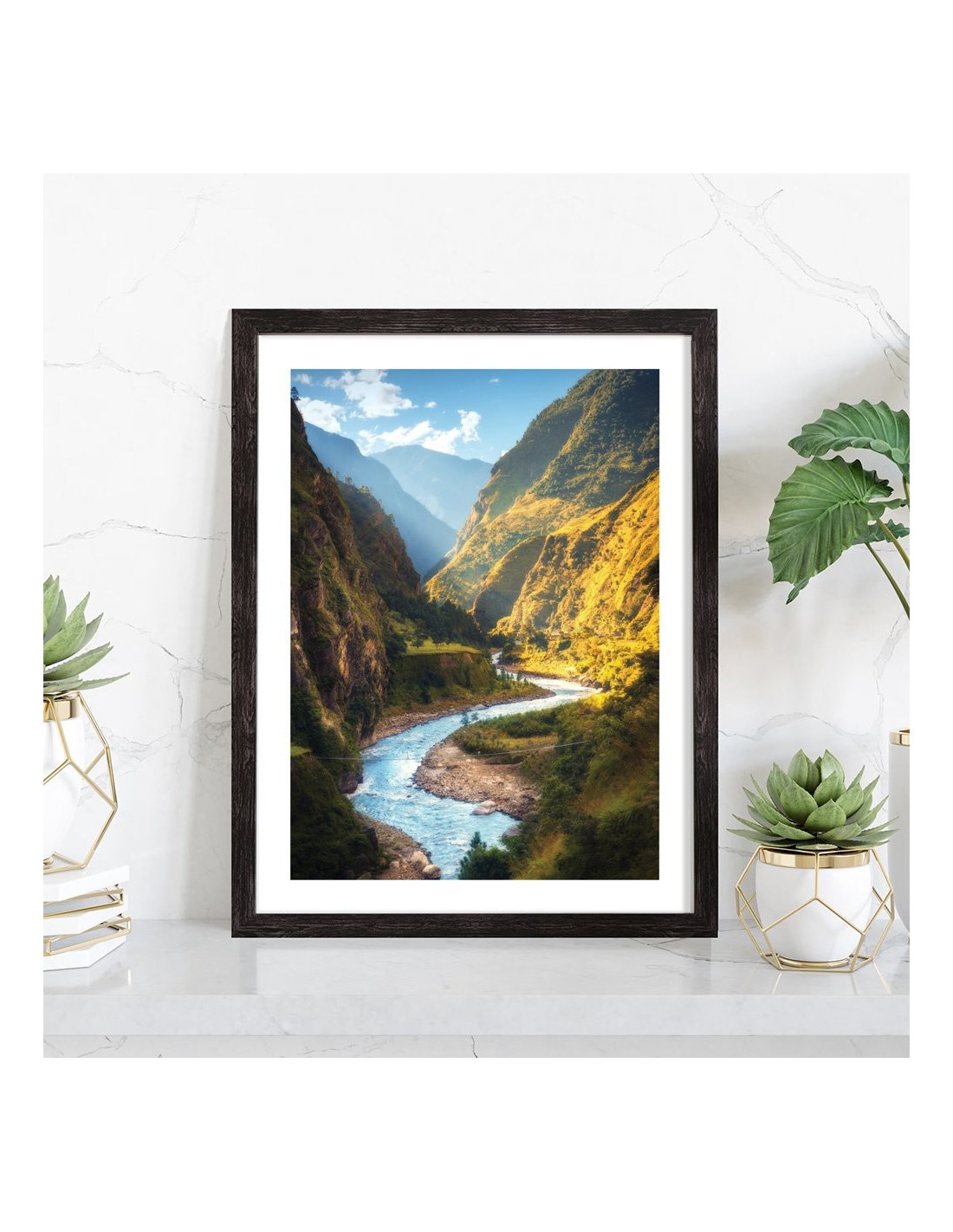 Tableau décoration nature d'une rivière au milieu des montagnes.