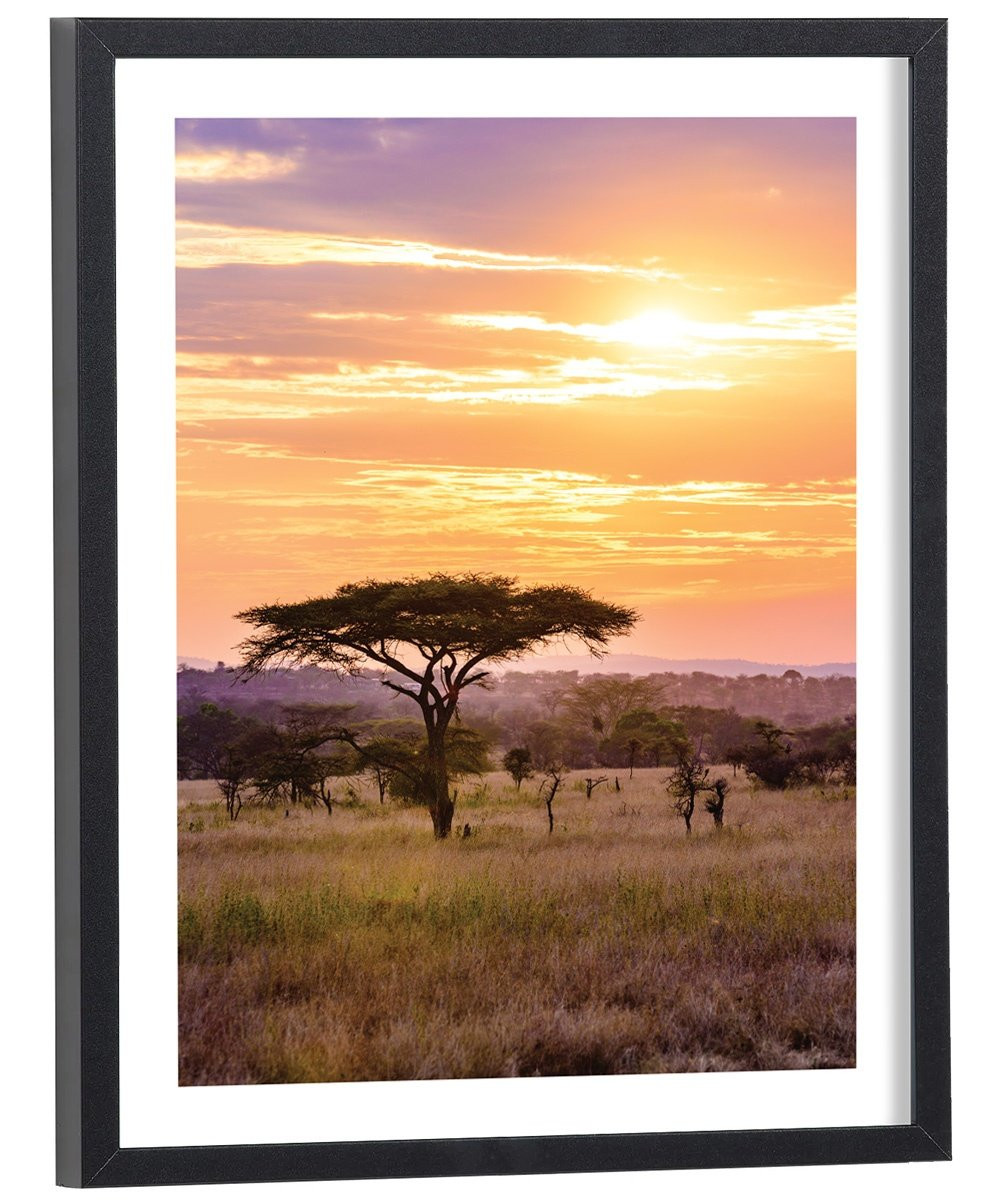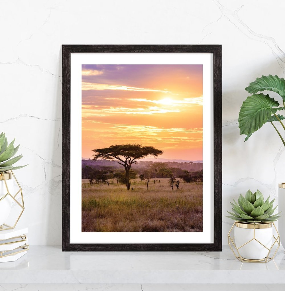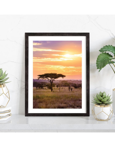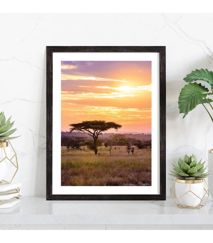 Tableau décoration nature d'un coucher de soleil dans la savane.
