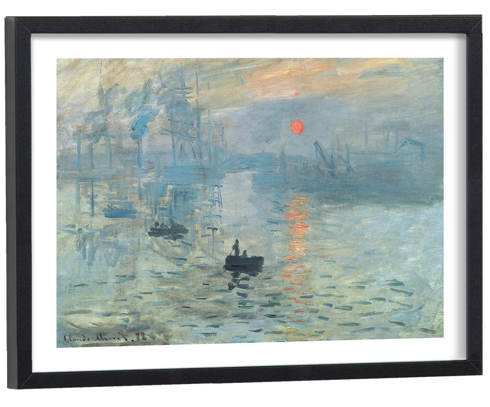 Tableau décoration d'une reproduction de l'oeuvre "Soleil levant" de Claude Monet, dont le titre donné pour la première exposition impressionniste d'avril 1874 a donné son nom au courant de l'impressionnisme.