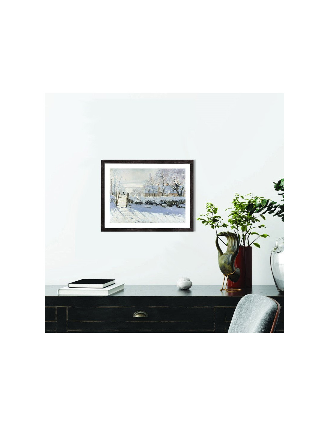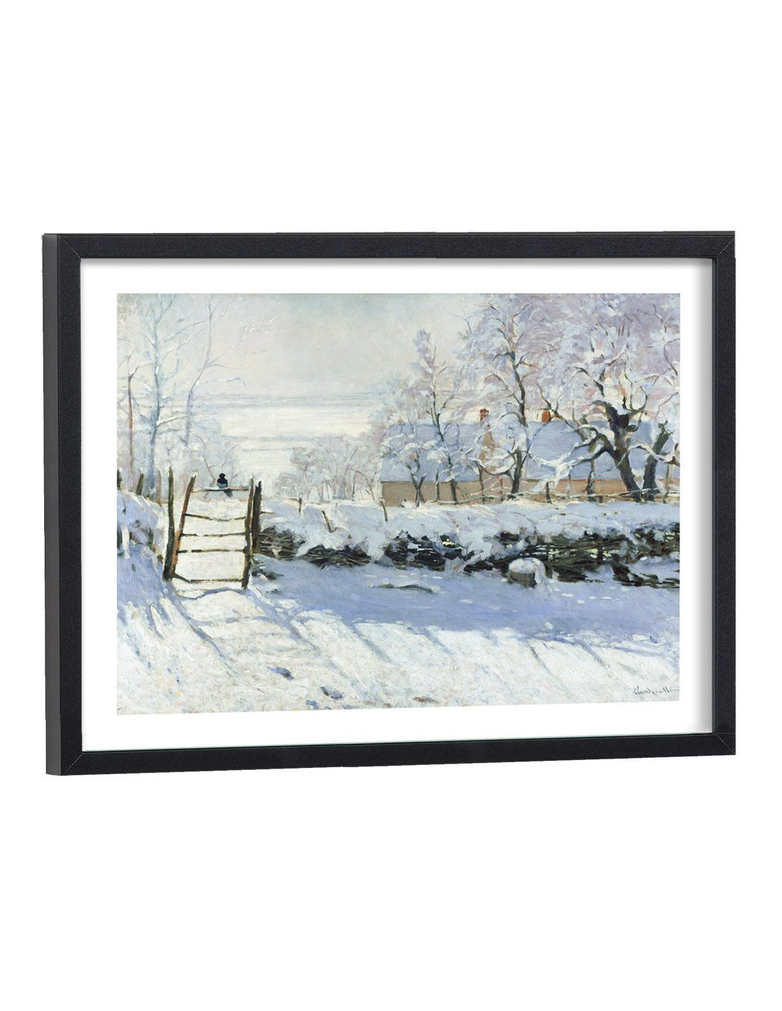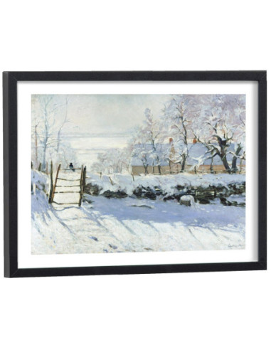 Tableau décoration d'une reproduction de l'oeuvre "La Pie", une peinture à l'huile sur toile réalisée par Claude Monet à Étretat en 1868-1869. Elle représente un paysage enneigé à Etretat. La pie posée sur une clôture dans un paysage hivernal lui donne son titre.