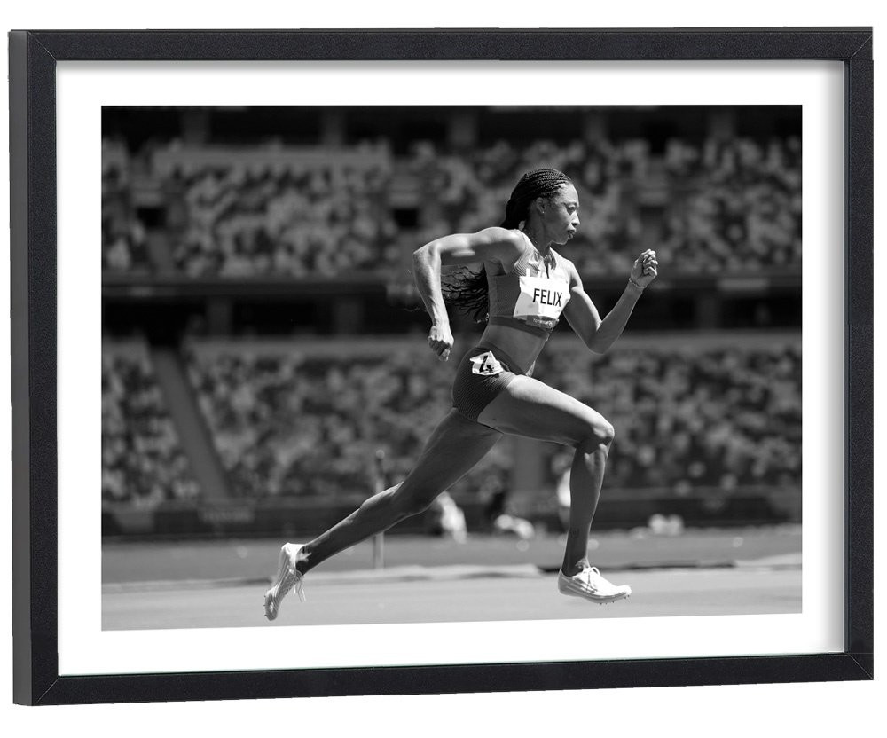 Affiche décoration noir et blanc de l'athlète américaine Allyson Felix.