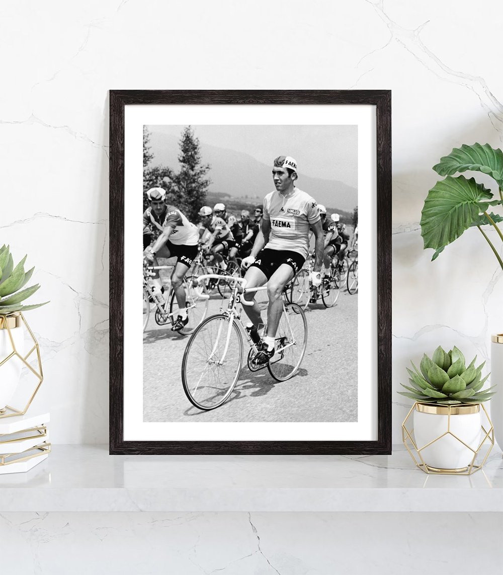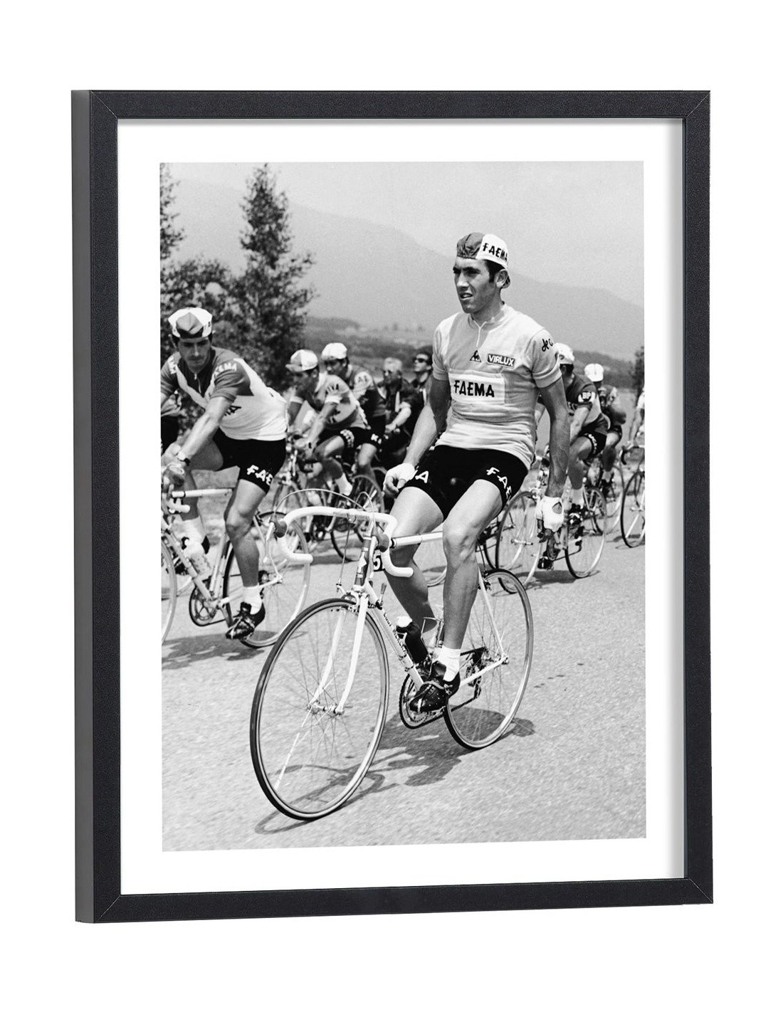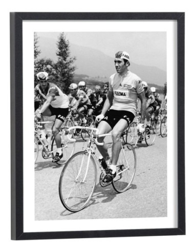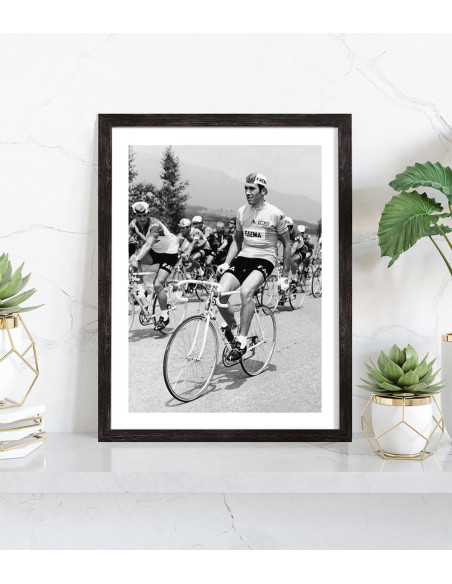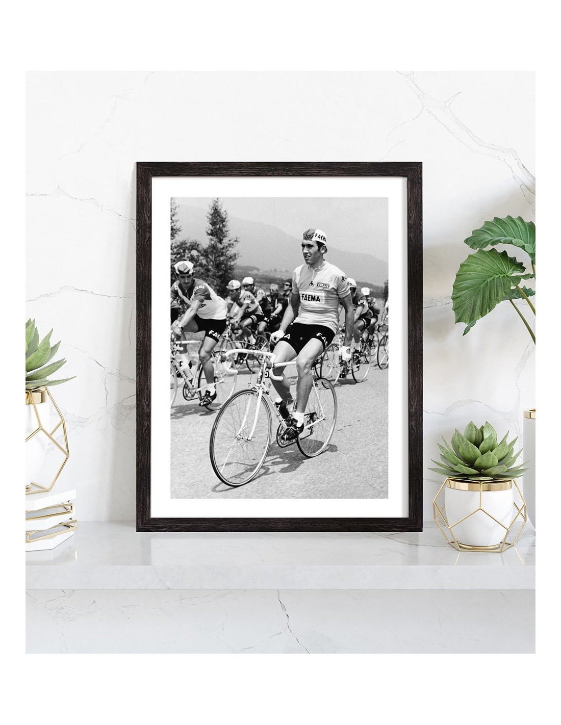 Affiche décoration noir et blanc du coureur cycliste Eddy Merckx, lors du tour de France 1969 .