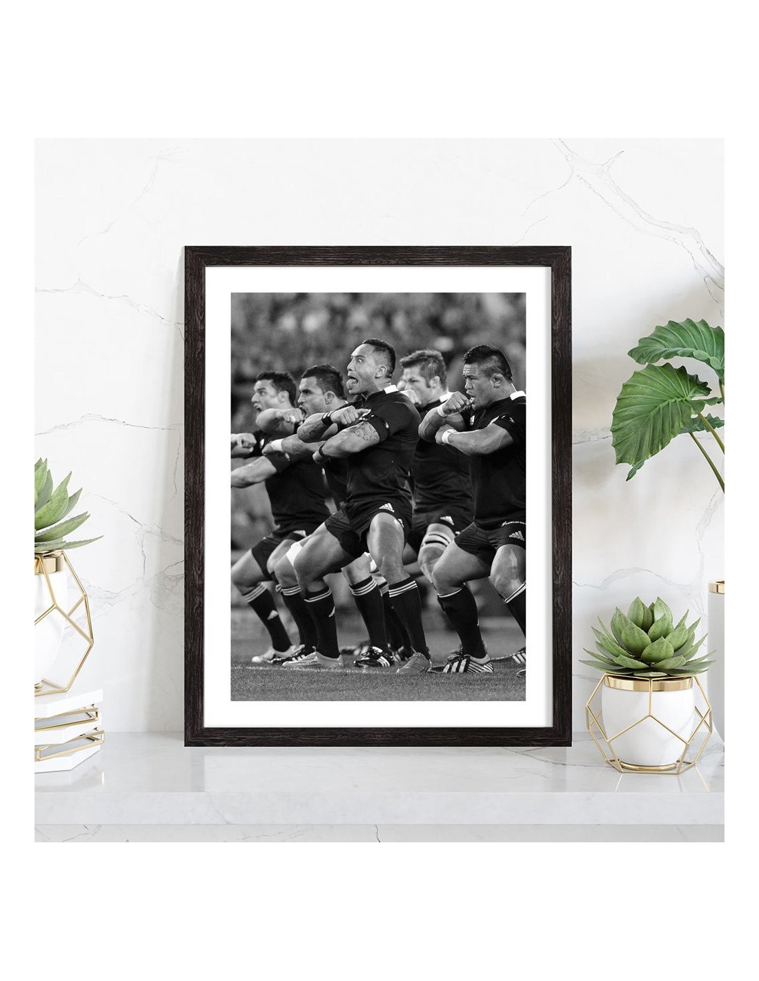Tableau décoration sport de l'équipe nationale de rugby de la Nouvelle Zélande en train de réaliser le Haka.