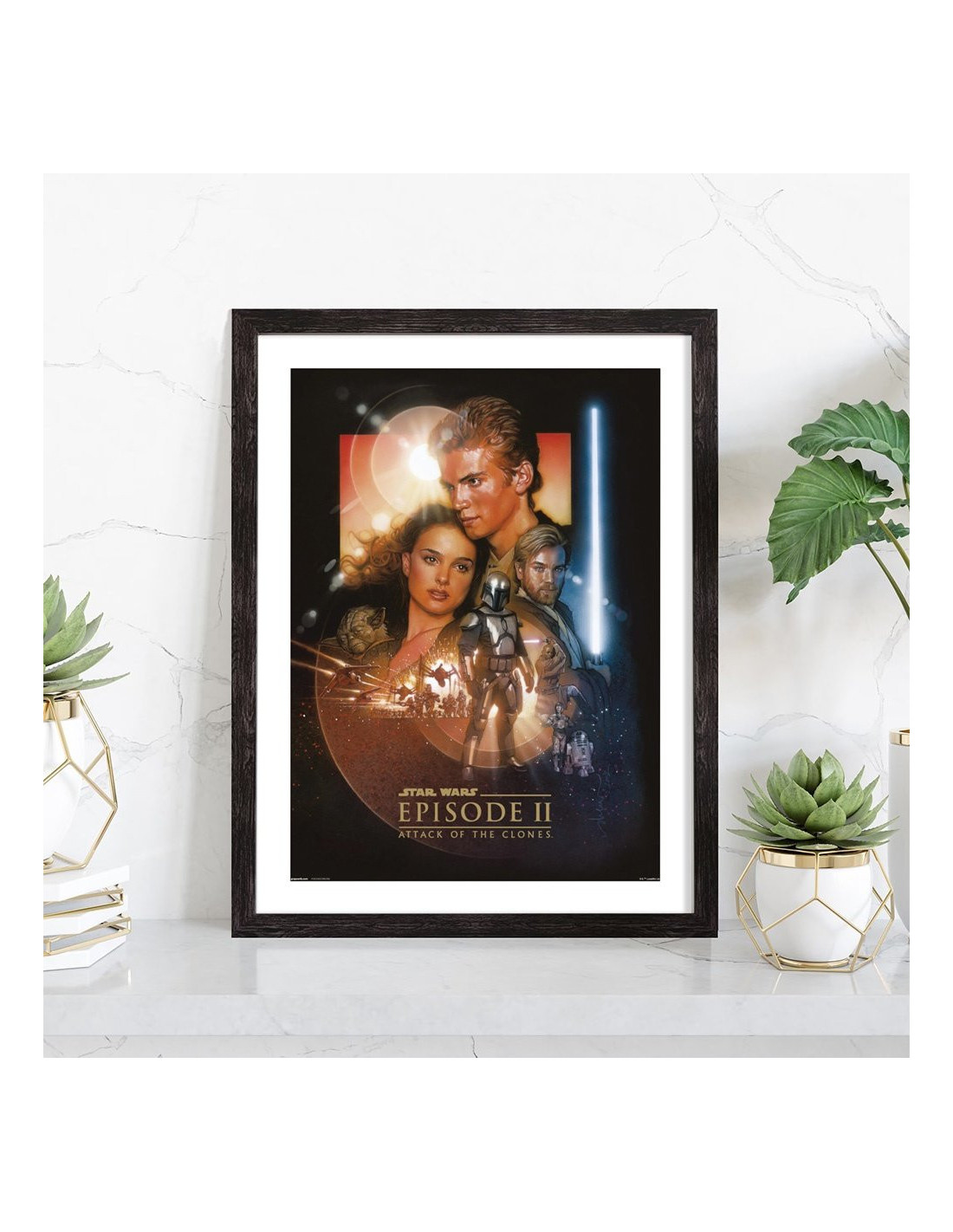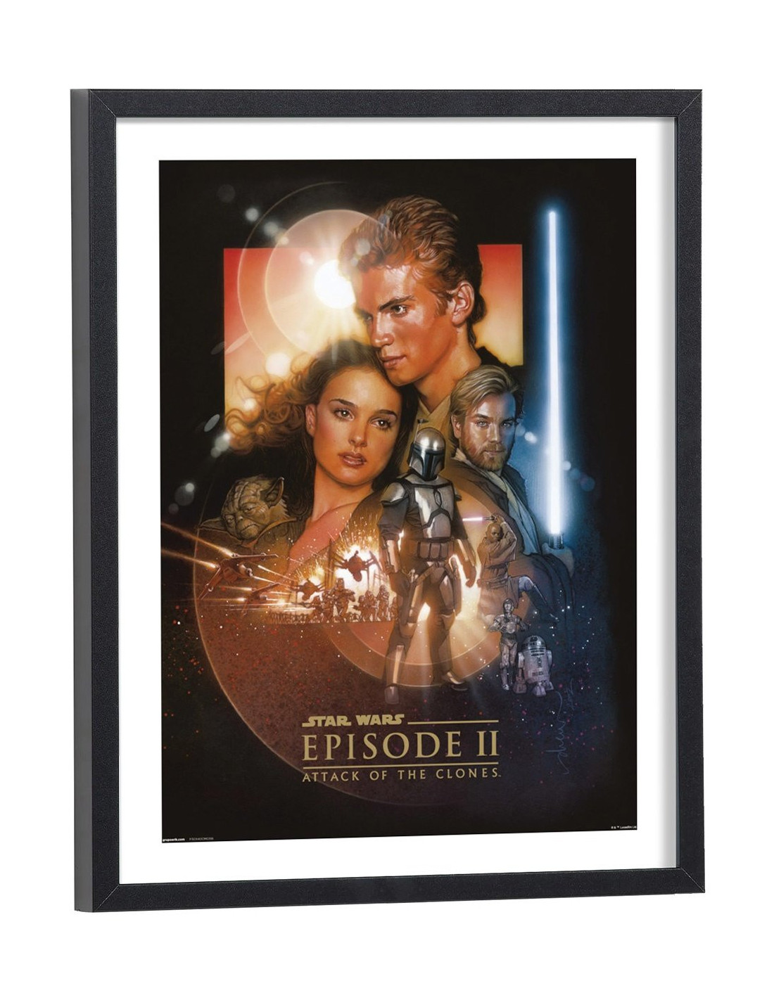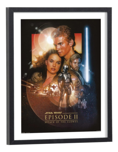 Affiche du film "Star Wars Episode 2". Affiche encadrée avec cadre en bois noir.
