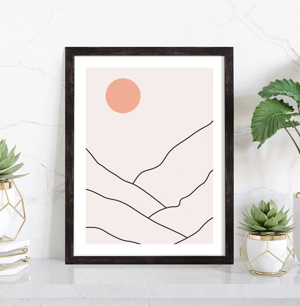 Tableau décoration Abstrait montagne soleil.