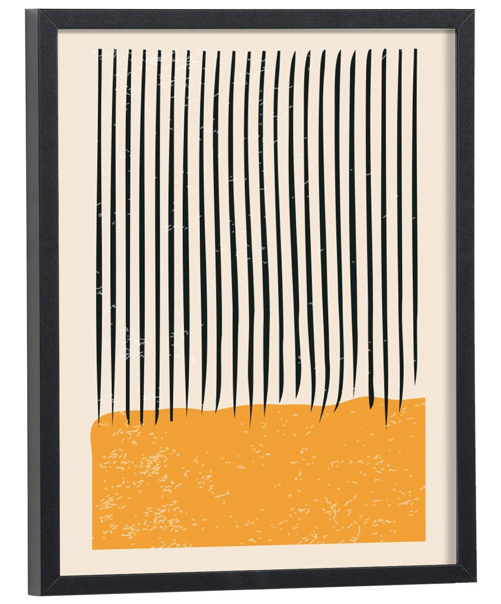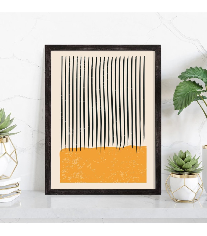 Tableau décoration Abstrait lignes noires fond jaune.