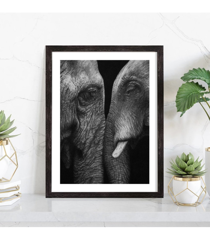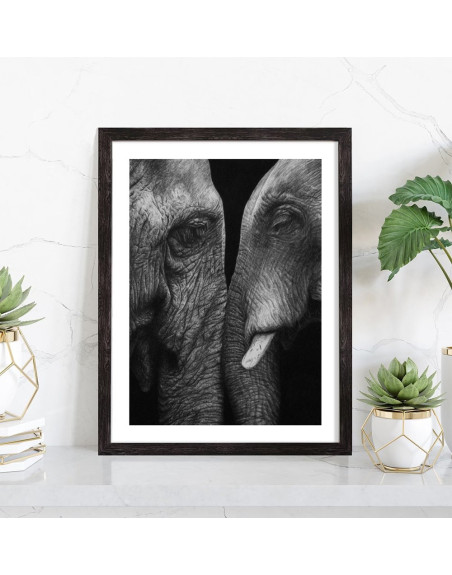 Tableau décoration vintage noir et d'éléphants face à face.