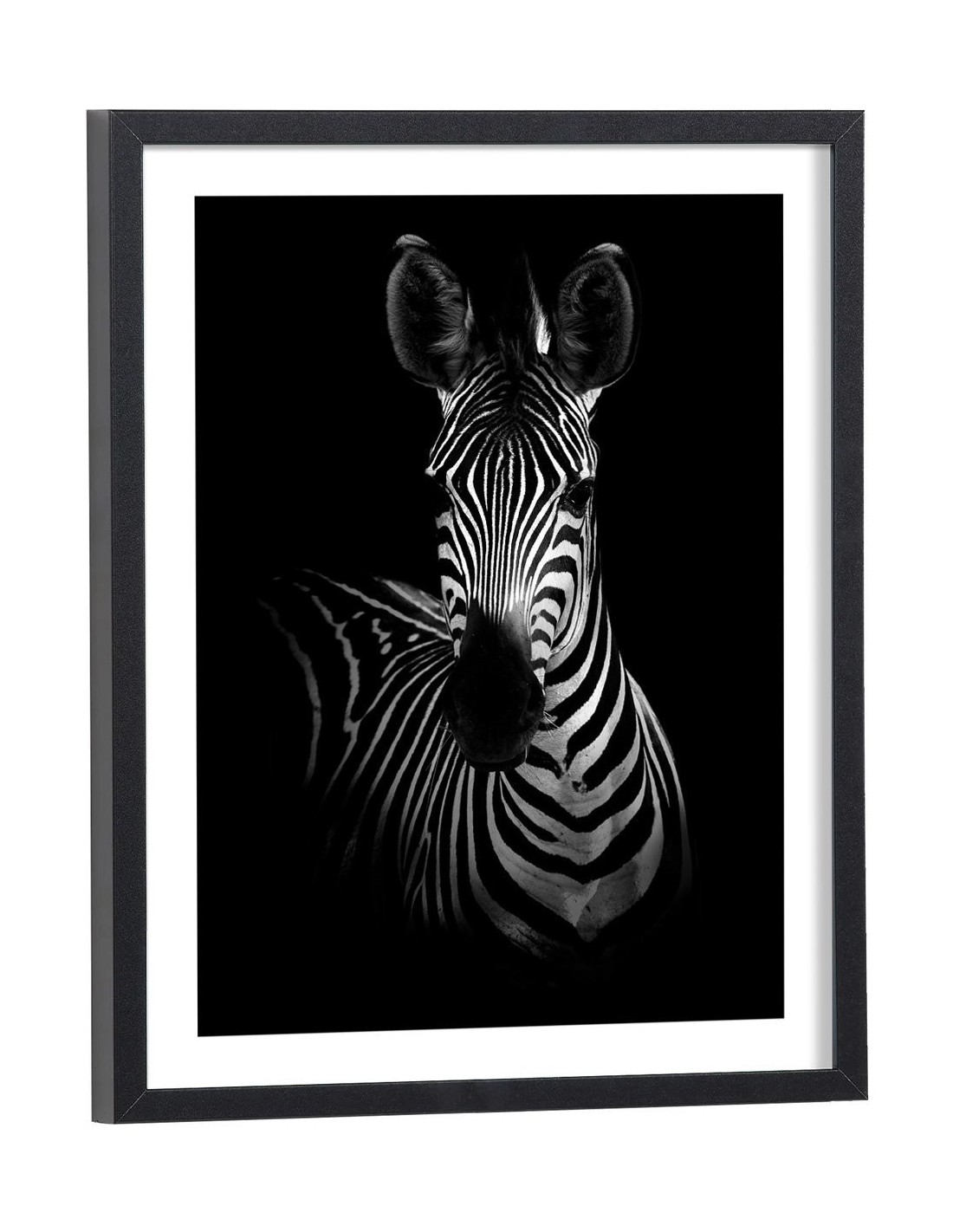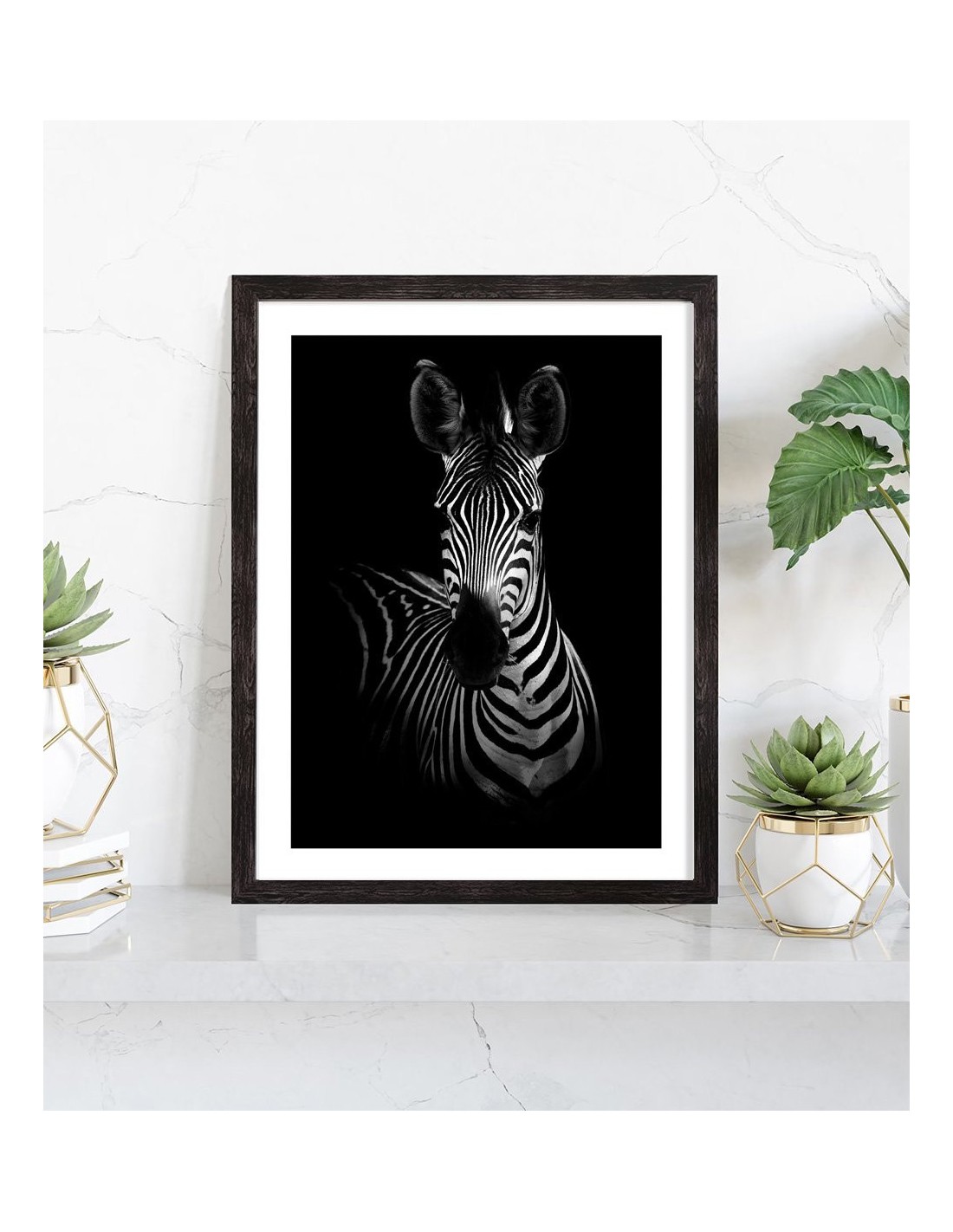 Tableau mural décoration d'animal. Retrouvez le tableau de zèbre noir et blanc. Composé d'une affiche de zèbre et d'un cadre en bois noir.