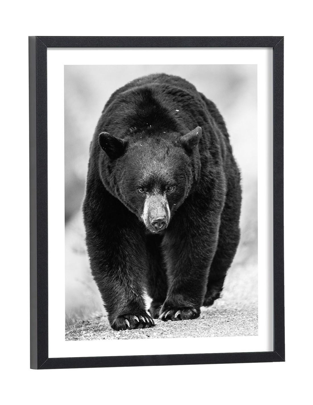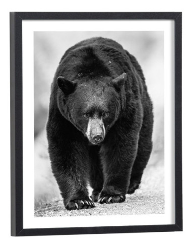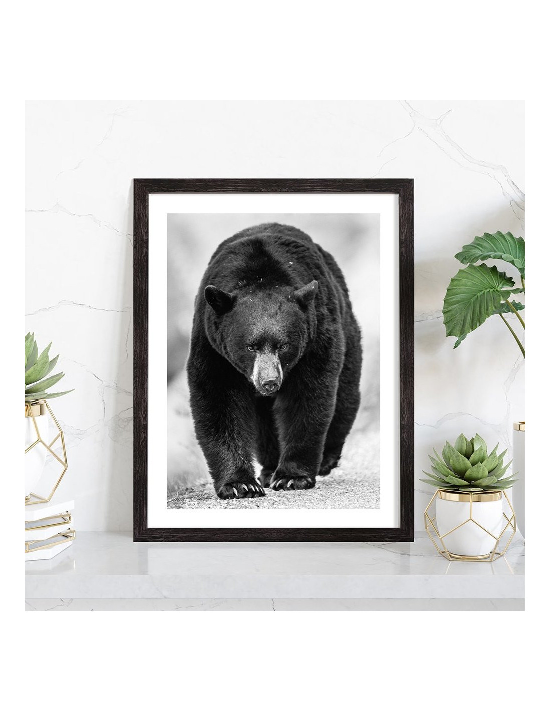 Tableau décoration noir et blanc d'un ours brun. Cette affiche encadrée décorera parfaitement votre intérieur.